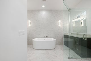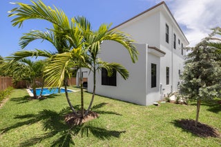 Welcome to 309 Cascade Lane the only brand-new construction home in all of Palm Beach Shores. This stunning Spanish Colonial-style residence is truly one of a kind, offering a luxurious blend of elegance and comfort. Situated on a prime lot, the home features a governor's driveway and a spacious two-car garage with durable epoxy floors--complete with a brand-new 6-seater golf cart to enjoy the golf-cart-friendly community of Singer Island.As you step through the grand double doors, you're welcomed by rich, dark wood-look porcelain tile flooring that flows seamlessly throughout the home. The open-concept layout connects the living, dining, and kitchen spaces, creating a warm and inviting environment perfect for entertaining or relaxing.environment perfect for entertaining or relaxing. The heart of the home is the designer kitchen, featuring a show-stopping fantasy brown marble island that is bookmatched into the custom sink basin. Mystery white quartzite countertops, a sleek backsplash, bone-colored custom cabinetry, and nickel hardware complete the elegant design. Off the living room, retreat to your oversized primary suite with dual walk-in closets and a luxurious en-suite bathroom. The spa-like space boasts marble flooring, a double vanity, a seamless glass shower, a freestanding soaking tub, and a marble wave accent wall that adds texture and sophistication. Upstairs, you'll find a second primary suite and a flexible den/office or sitting area with a large walk-in shower. Two additional Jack-and-Jill bedrooms offer privacy and convenience, all connected by a beautifully crafted custom wood railing and a large window that fills the stairwell with natural light. Step outside into your private backyard oasis featuring a fully fenced yard, a heated saltwater pool with water features, and a built-in summer kitchen with a grill and refrigerator perfect for enjoying the Florida lifestyle year-round. Located just a few blocks from the Palm Beach Inlet, 309 Cascade is connected to a scenic walking trail that links every street in Palm Beach Shores. You're only minutes from the beach and within walking distance to Ocean Mall, home to six restaurants, a coffee shop, and charming souvenir stores. Don't miss this opportunity to own the finest new construction home in Palm Beach Shores.