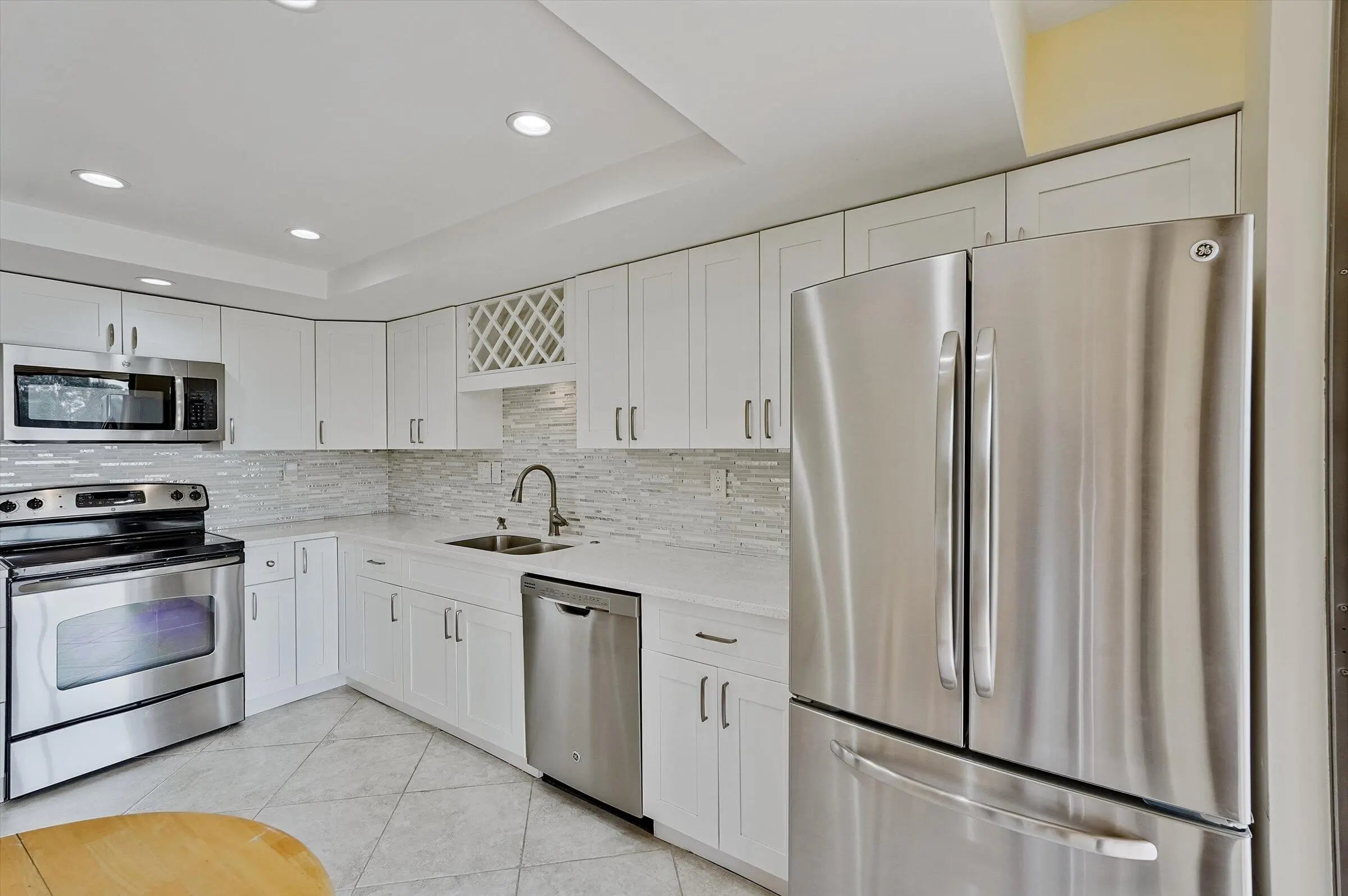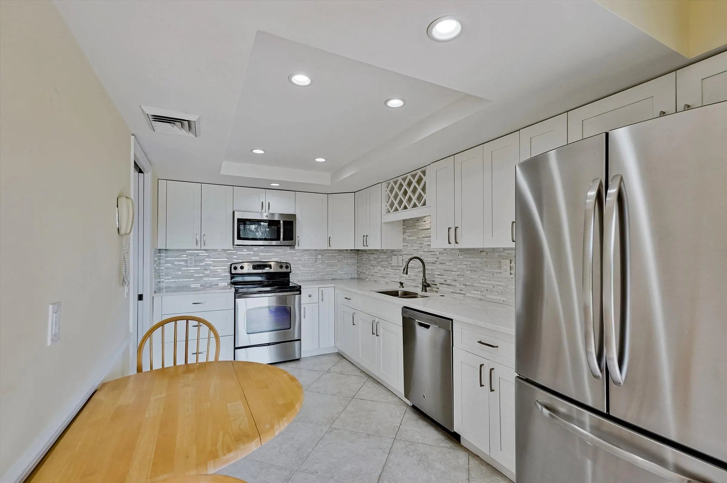 Welcome to Woodland Lakes! This serene, highly sought-after 55+ community offers an unbeatable location near the Turnpike and I-95, just minutes from premier dining, shopping, medical facilities, and cultural attractions. This highly desirable and convenient 1st floor, spacious, light-filled condo features designer updated kitchen, two generously sized bedroom suites, each with luxuriously updated bathrooms, providing exceptional comfort and privacy. Large windows showcase stunning lake views, filling the home with natural light and bringing the beauty of the outdoors inside.Additional highlights include a full-size washer and dryer in the dedicated laundry room and a screened-in patio overlooking the lake, perfect for morning coffee or relaxing evenings.