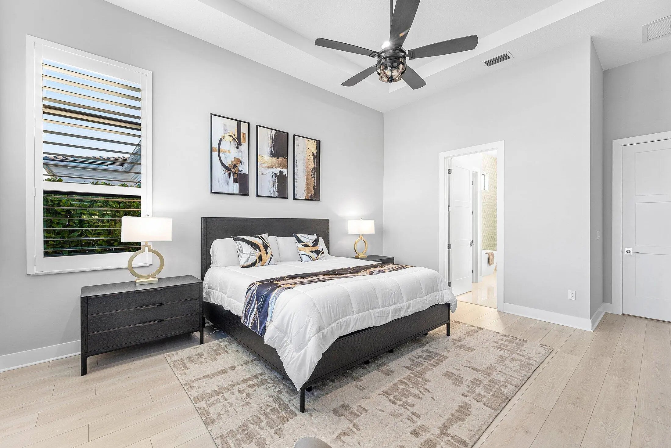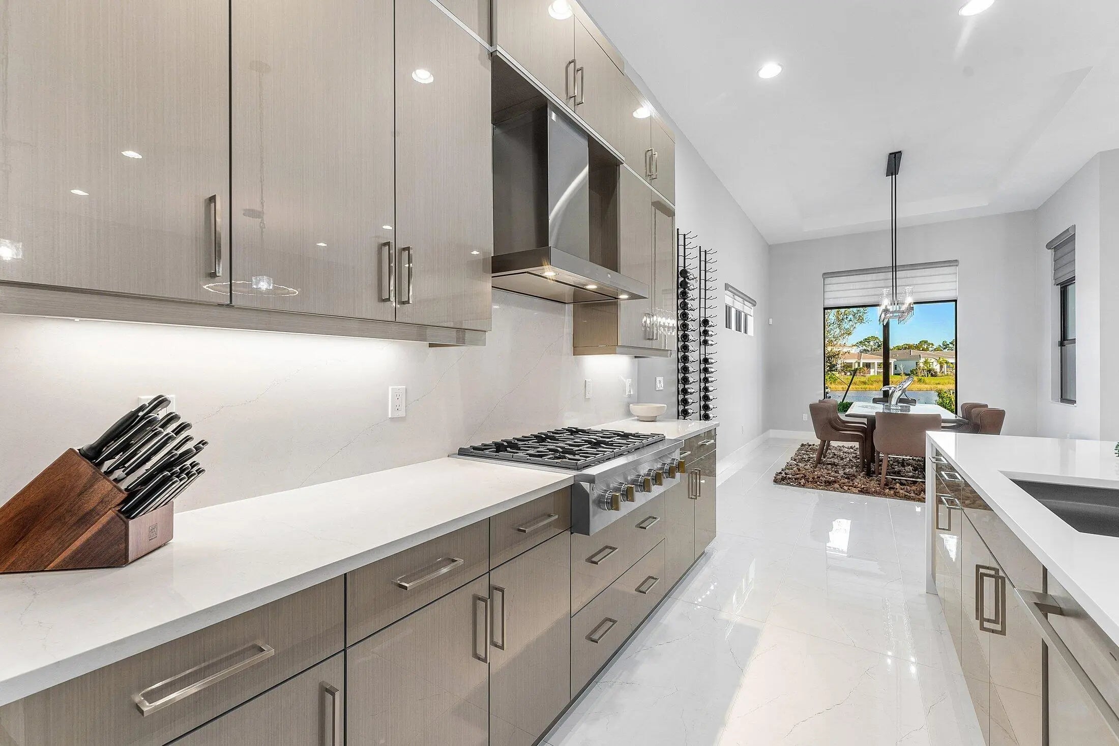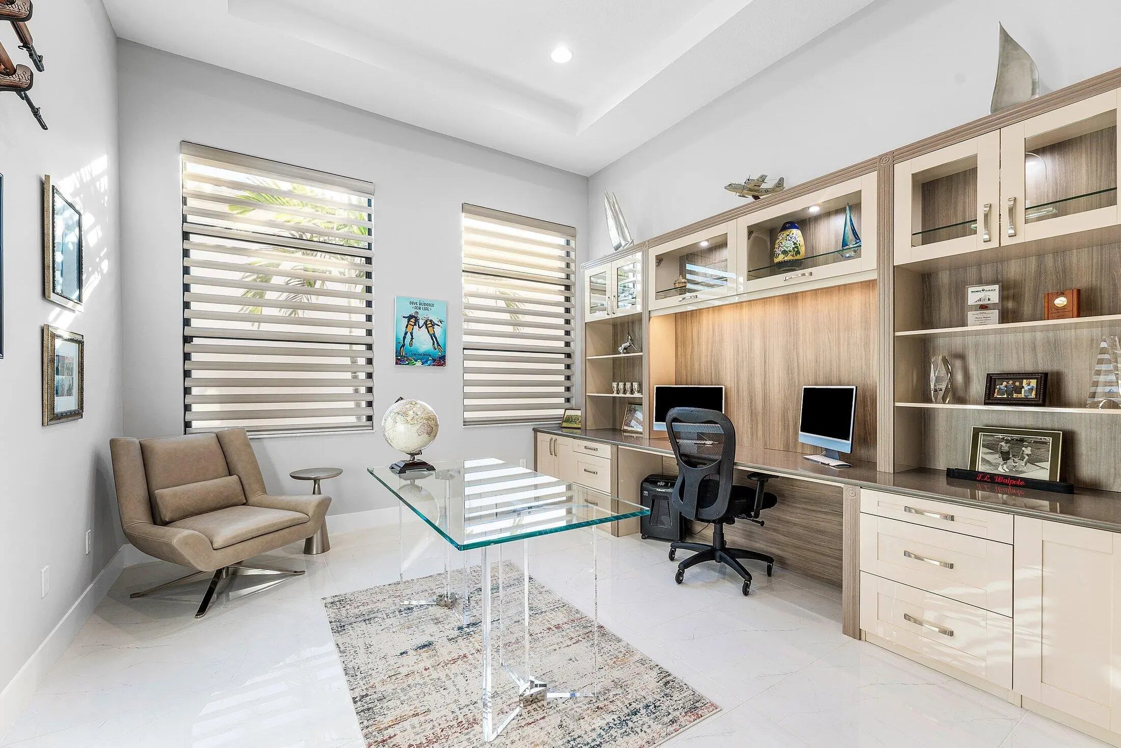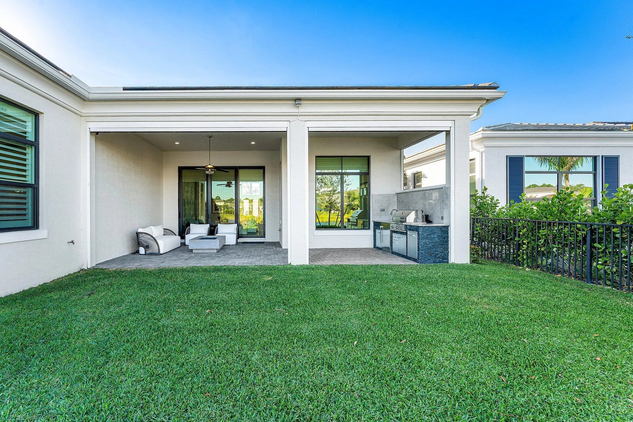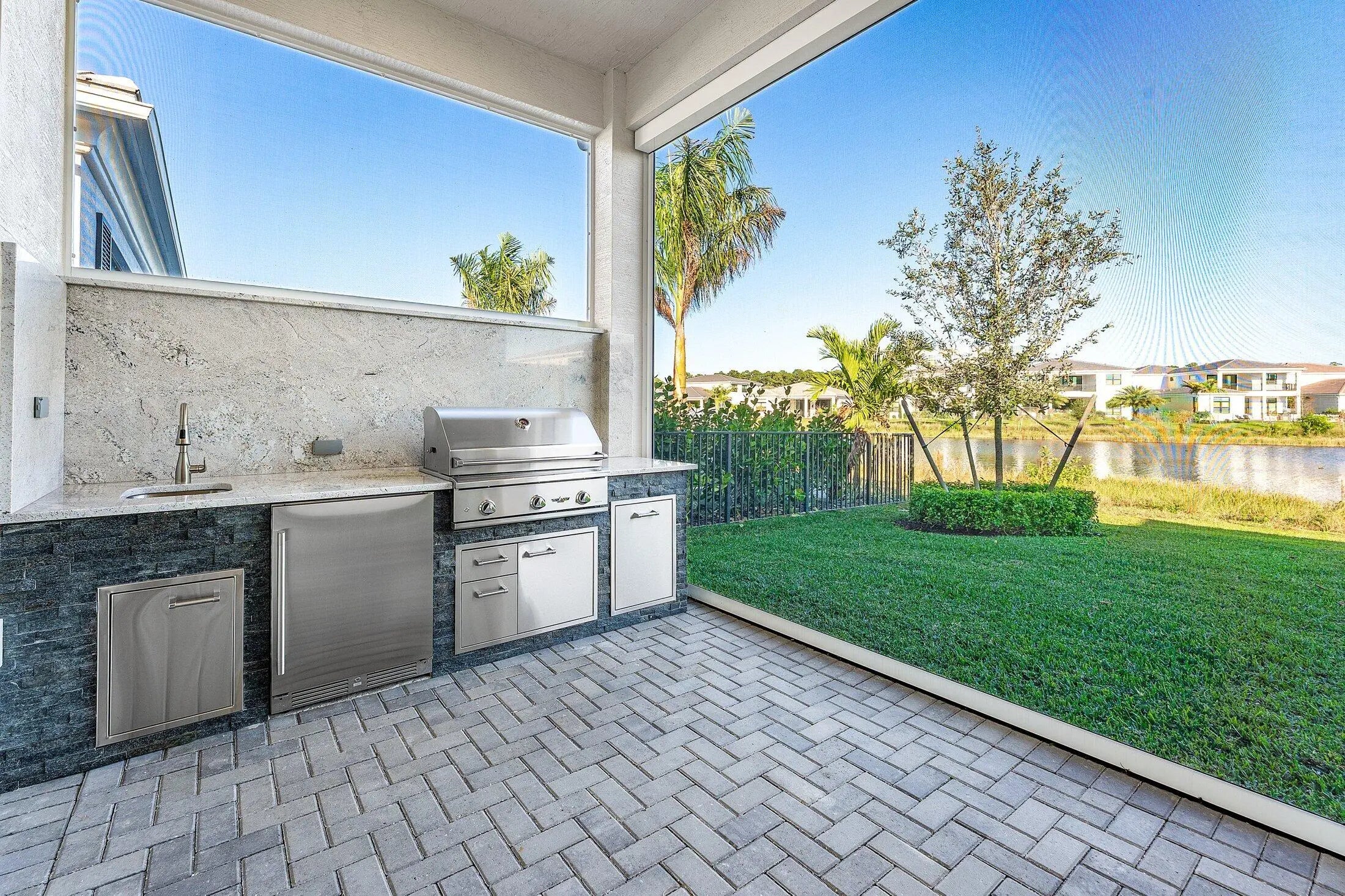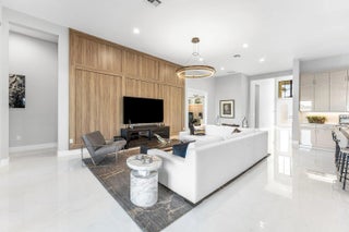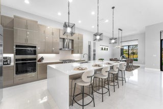 Contemporary elegance meets the ultimate in resort living at Artistry Palm Beach! This luxury home is offered turnkey/furnished with high-end Restoration Hardware pieces and custom accents. Spanning 2984 sq. ft, the impressive 16-foot ceilings, panoramic water views and a split floor plan featuring 3 bedrooms (all en-suite) plus a den are sure to please. There are built-in's galore in this home to include the master closet, office, 3rd bedroom and all closets. The chef's kitchen is a masterpiece, anchored by a 12-foot waterfall quartz island, Italian upgraded high-gloss cabinetry, 48'' Monogram refrigerator/freezer, wine refrigerator and gas cooktop!