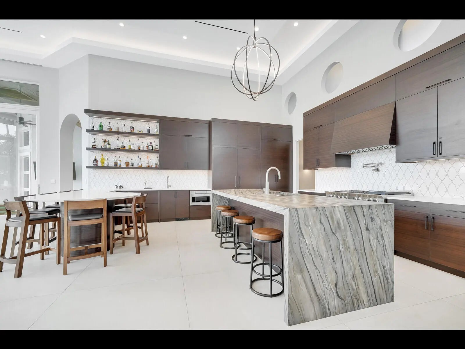 Welcome to a rare offering within the prestigious gates of Old Marsh Golf Club -- an extraordinary estate that defines refined living across more than 7,400 square feet of thoughtfully designed interior space. Created for the most discerning buyer, this custom residence features six spacious bedrooms, six full and two half baths, a three-car garage, private den, and dedicated fitness room, all positioned to maximize privacy, comfort, and architectural flow.Seamlessly uniting sophisticated interiors with tranquil outdoor living, the home's open-concept kitchen and great room form the heart of the estate, where expansive walls of glass frame lush natural views and flood the space with light. The primary suite opens directly to a resort-style pool and spa, offering a private sanctuary of