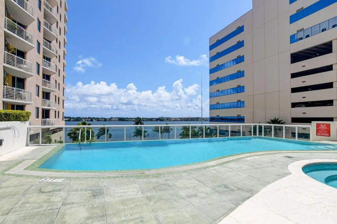 Waterfront residence directly off Flagler Drive with a rarely available southeast sunrise view of the beautiful intracoastal! Every room in this home has an amazing water view! Vacation home used only a few days a year unit 1217 is in pristine turnkey condition. Sleek kitchen with granite countertops and a light and bright living room. Features include a walk-in closet, two storage units, garage parking, and in unit washer and dryer. This unit has everything you need whether you want to go on vacation or just live like you're on vacation permanently. The amenities at The Slade include a private fitness center, 24 hour manned front desk, valet parking, 2 heated infinity pools, hot tub, sauna, business center, and club room. Downtown Clematis is walking distance where you have numerous