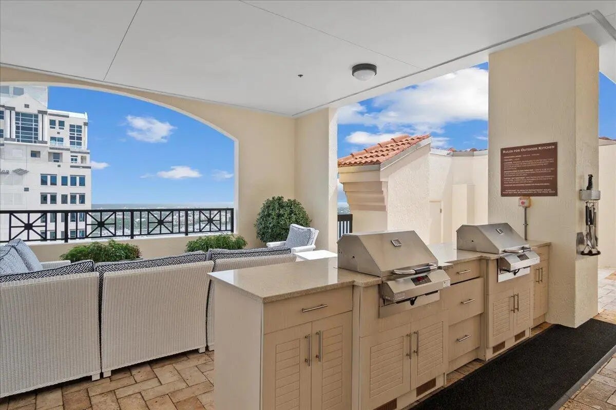 Beautiful condo located in prestigious luxury One City Plaza building featuring South Eastern views of intracoastal from balcony, living/dining area & 2 bds, possible 3rd bedroom, all new appliances, lots of storage, Open Floor plan, large balcony 12.4 x 5.4 with floor to ceiling glass sliders with intracoastal views, covered parking garage w/easy access from hallway (no elevator needed), New Bosch 3.5 ton A/C unit '20, furniture included, HOA includes internet and water, storage space PLUS a huge walk in double door storage closet (9.3 x 3) right outside unit for additional storage. Close to City Place, dining, PBI Airport and more! This luxury building has a 17th fl roof top inground salt heated pool w/ views of the intracoastal beaches & Palm Beach Island, on site manager, complimenta