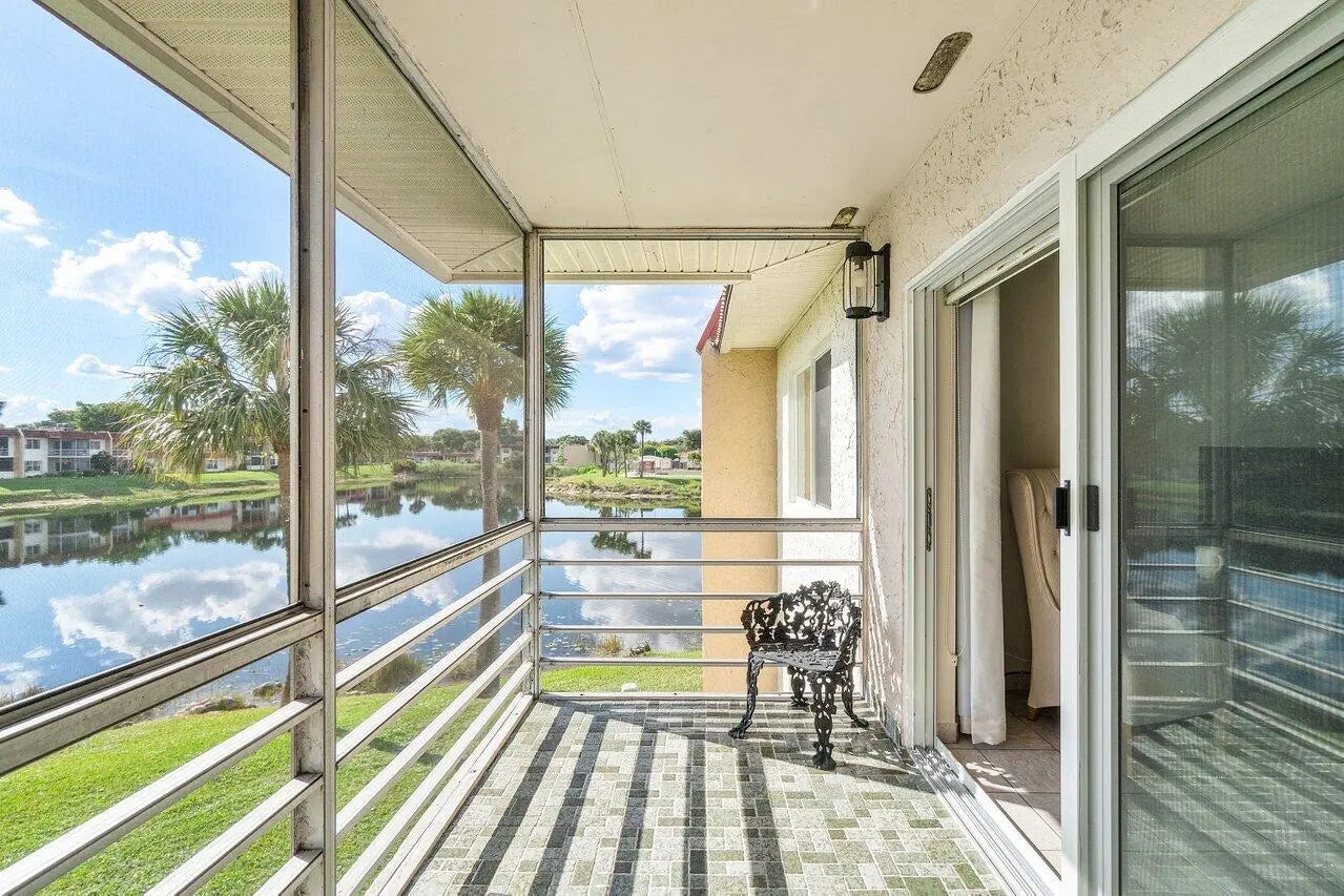 Welcome home to this beautifully maintained 1-bedroom, 1.5-bath condo in Golden Lakes, offering comfort, security, and serene water views. This safe and secure second-story unit features full impact windows and a newer roof (just 1.5 years old) for added peace of mind. Inside, you'll find tile flooring throughout, natural wood kitchen cabinetry, and an impressively spacious layout perfect for everyday living and entertaining.The home boasts abundant storage, including multiple closets and a walk-in pantry with washer/dryer hookup already in place. The remodeled primary bathroom provides a fresh, modern retreat, while the large living area flows effortlessly with natural light. Best of all, enjoy a beautifully private lake view from every room, creating a tranquil backdrop to your