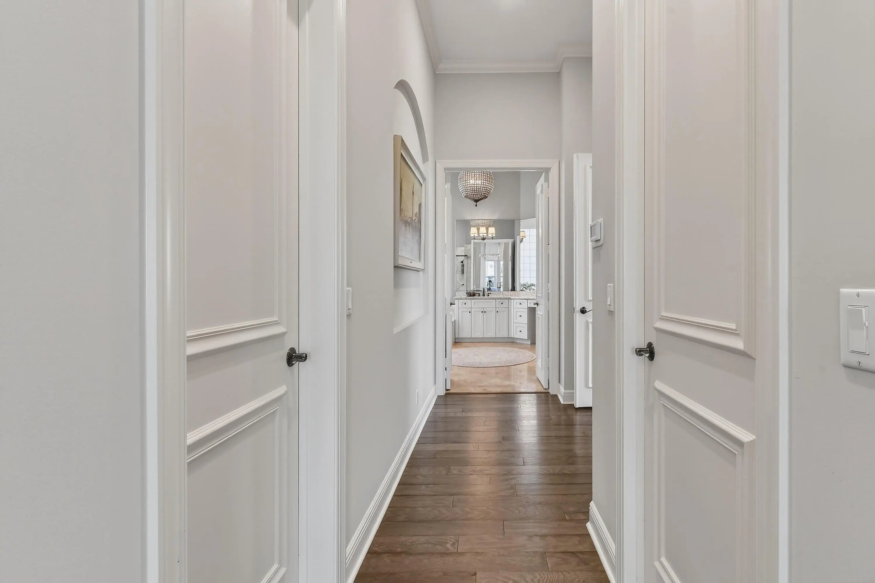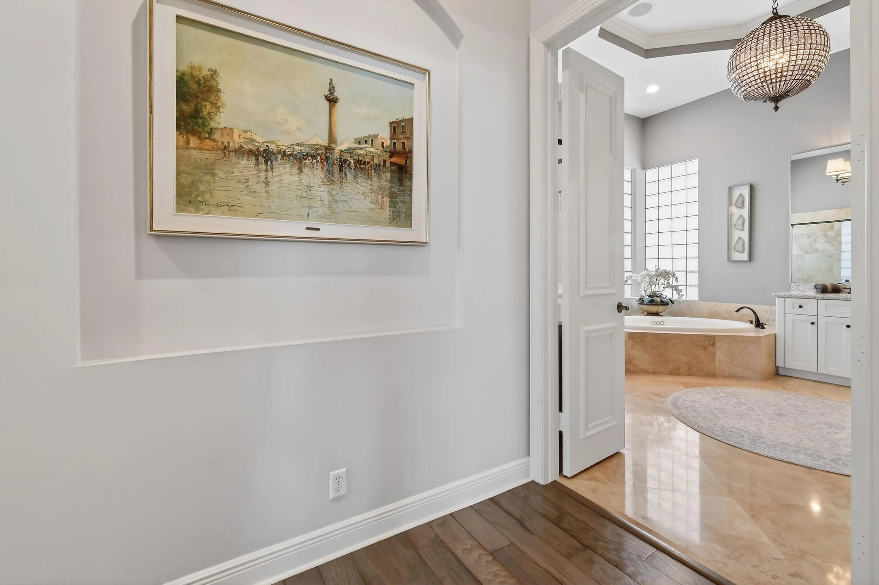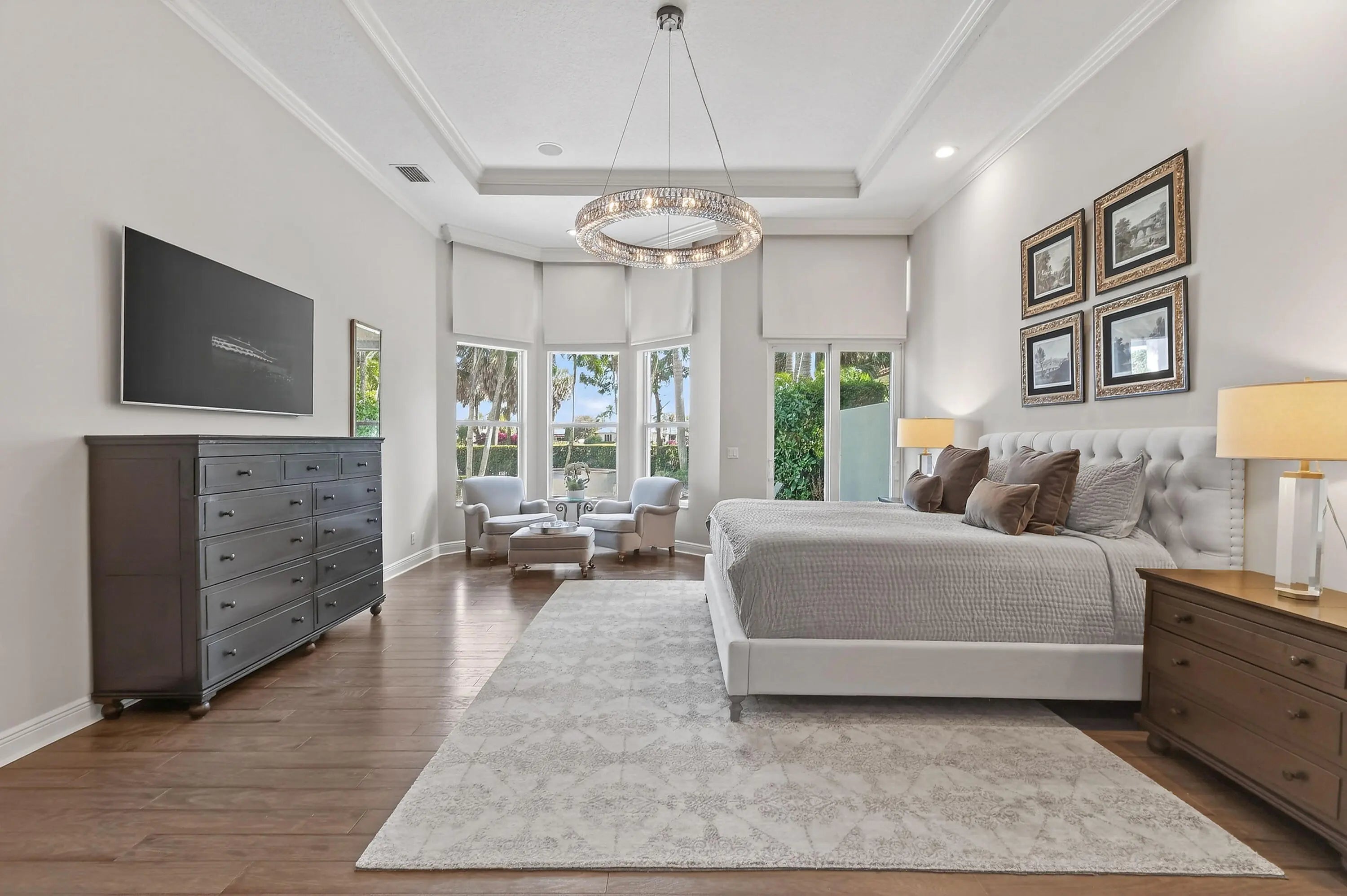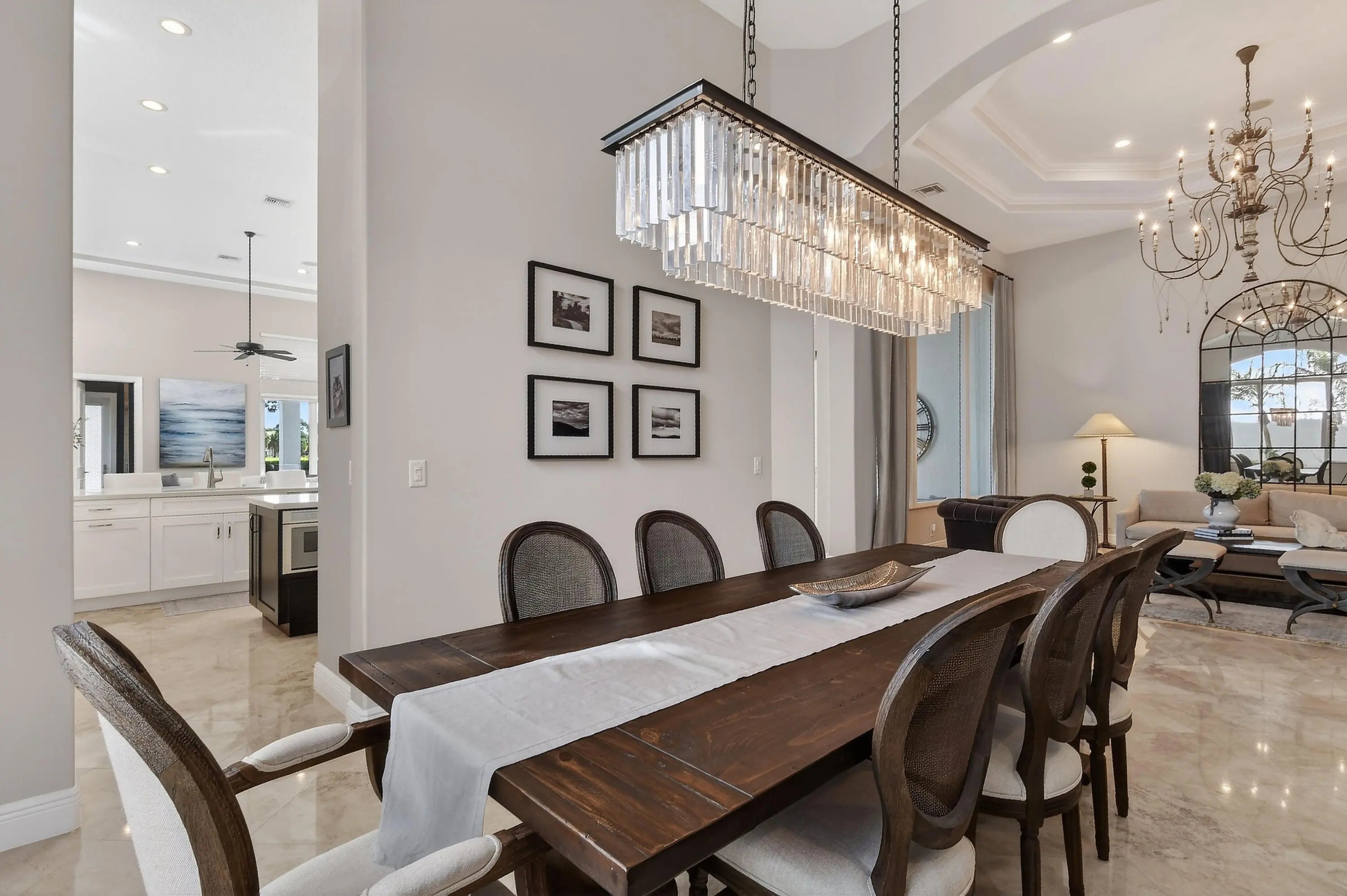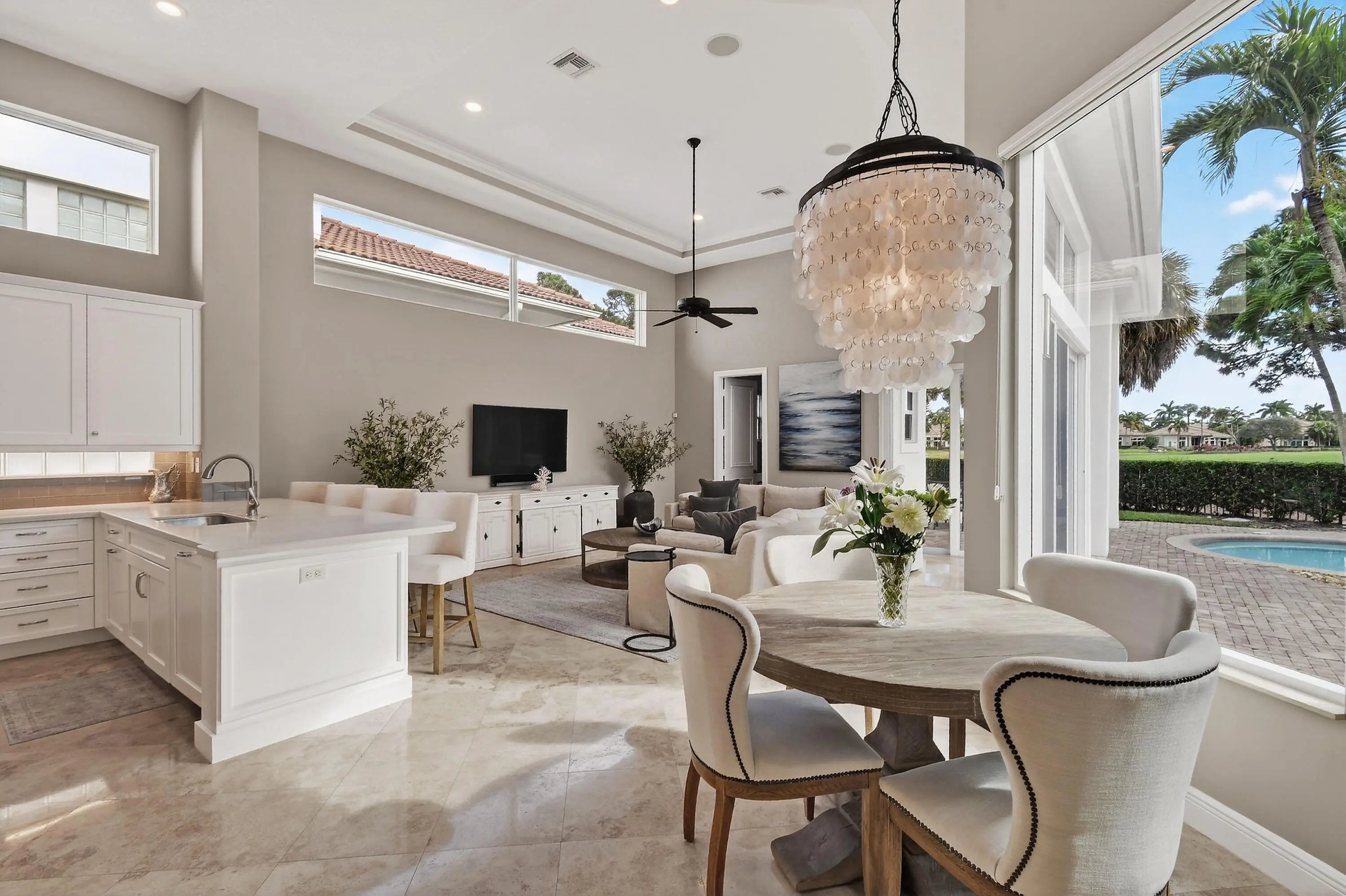 Within the prestigious, guard-gated community of Frenchman's Reserve, this elegantly reimagined single-story residence offers refined luxury, privacy, and timeless architectural appeal. Situated at the beginning of a quiet cul-de-sac on an oversized pie-shaped lot, the home enjoys expanded backyard space and tranquil golf and partial lake views across the 7th and 8th fairways, framed by mature landscaping and soft morning light. Offering more than 3,400 square feet of living space, the residence features three ensuite bedrooms, a dedicated office, and four full baths, all thoughtfully designed for both gracious entertaining and effortless everyday living.