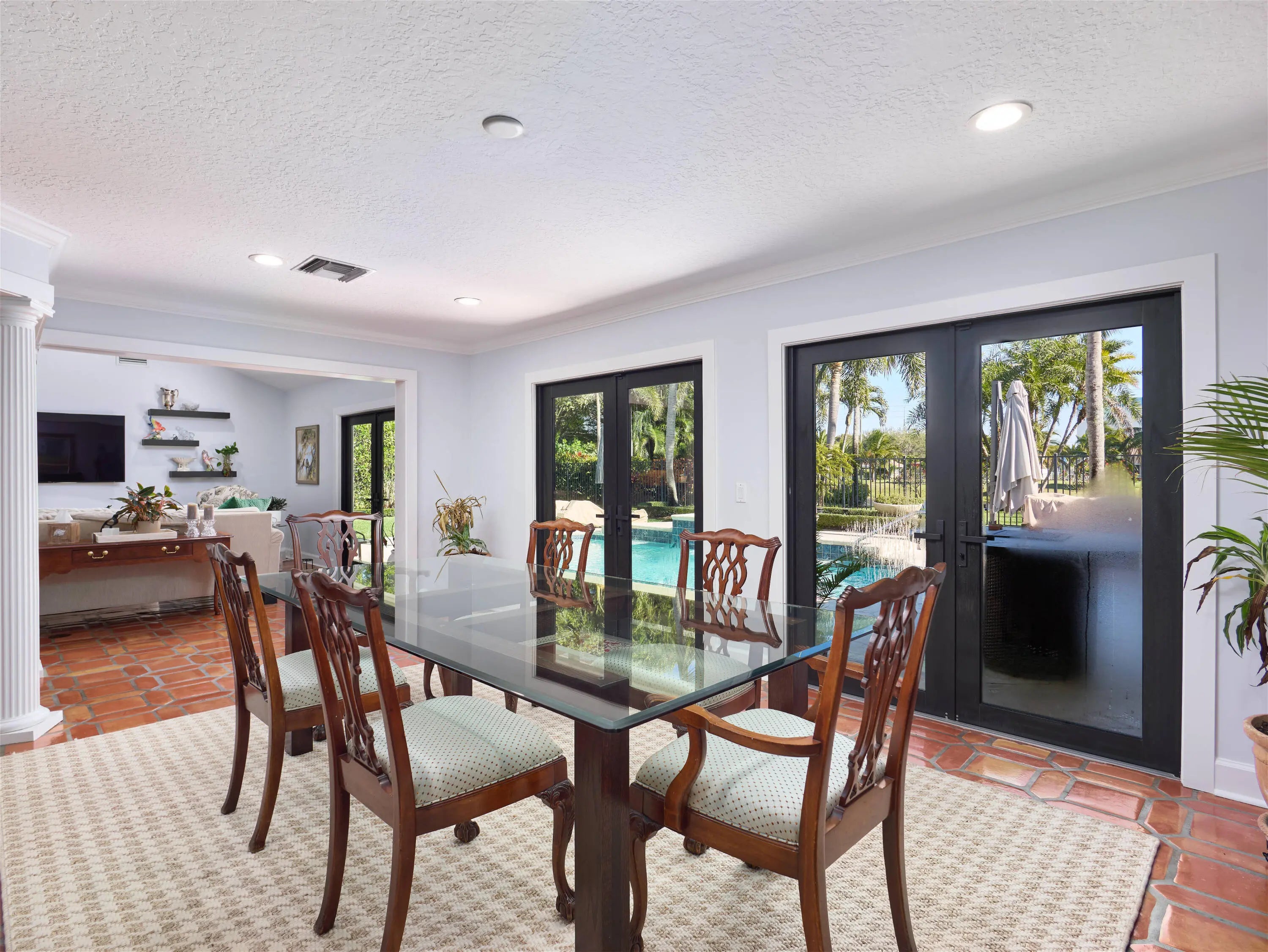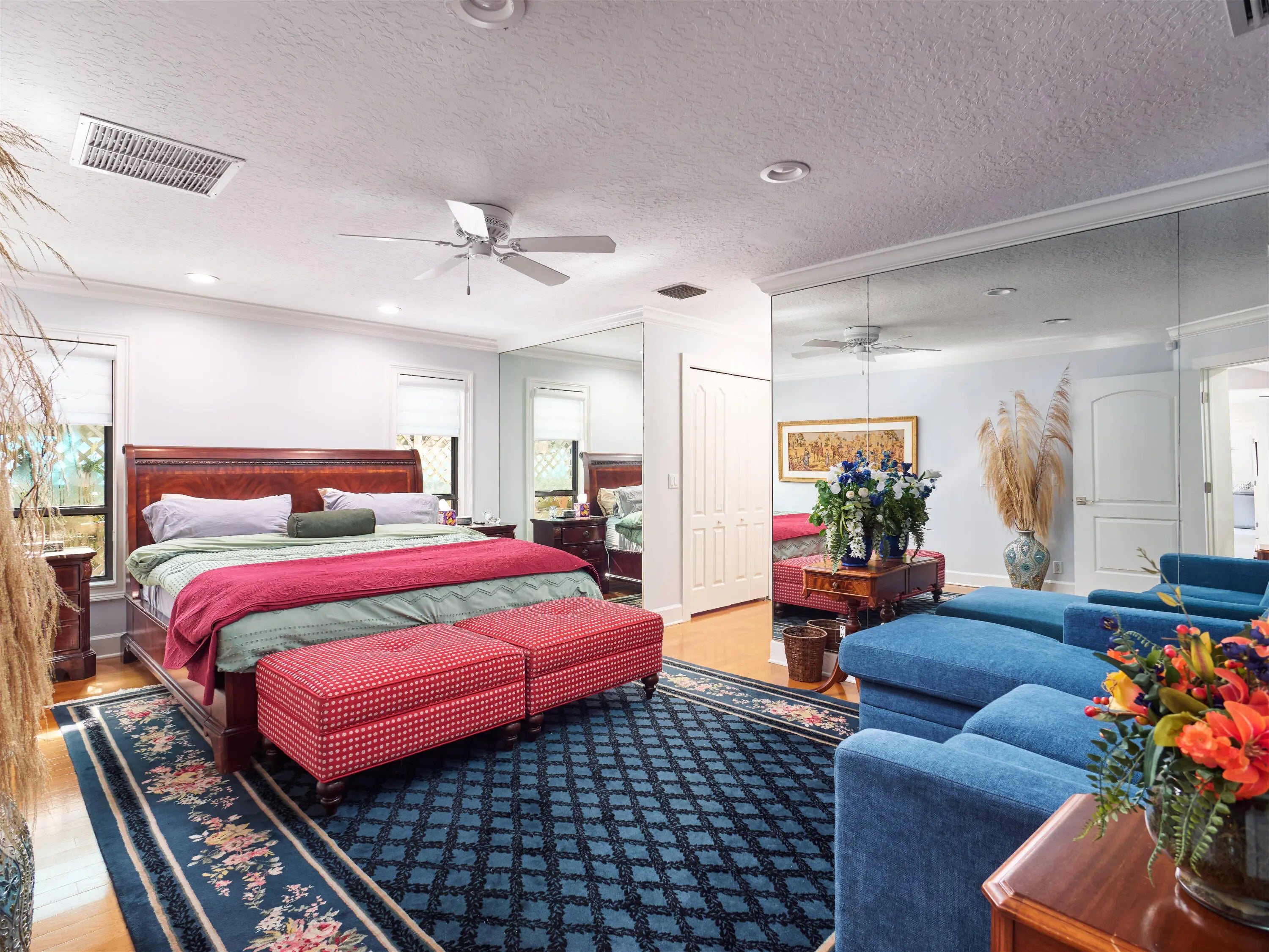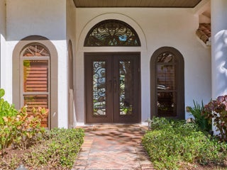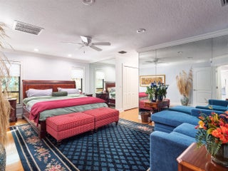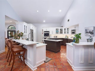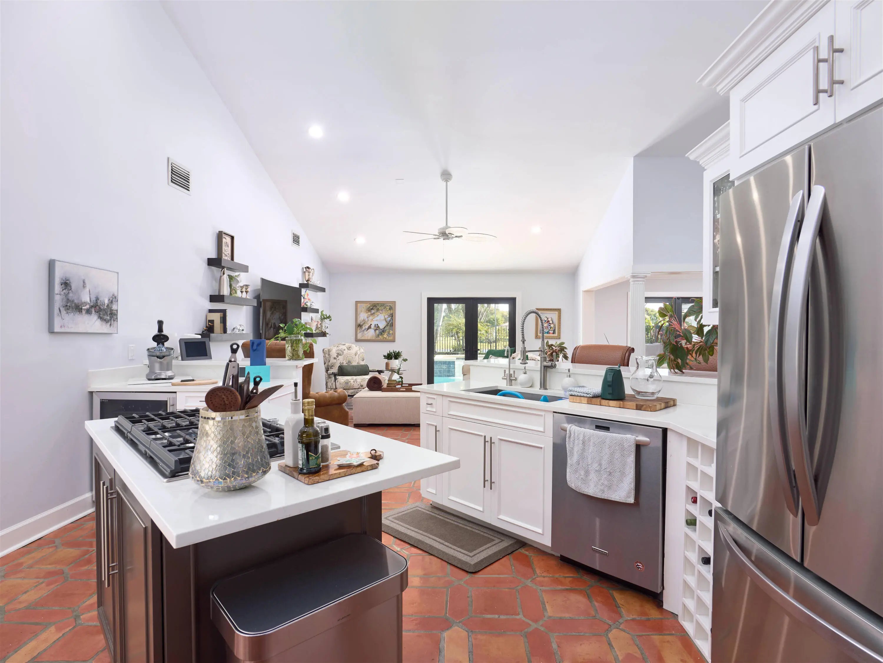 Welcome to this exquisite five-bedroom, four-bathroom residence in Presidential Estates, the only gated single-family community east of I-95. This highly sought-after waterfront enclave offers privacy, security, and exceptional convenience. The home features a bright, open-concept layout and includes two primary suites, one of which is a fully built new primary wing completed just two years ago, featuring a dedicated dressing room and custom shoe closet. The chef-inspired, recently redesigned kitchen showcases custom cabinetry, quartzite countertops, a new gas cook surface, and premium stainless-steel appliances. It is complemented by an adjacent, updated laundry room with quartzite countertops and a newer washer and dryer. A premium whole-home water purification system is paired with an