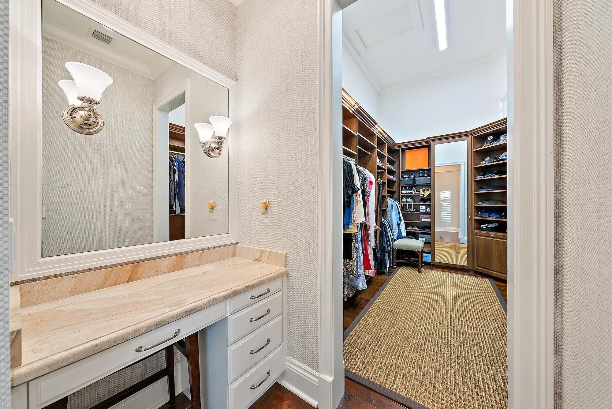 Bar, Built-in Shelves, Custom Mirror, Entry Lvl Lvng Area, Fireplace(s), Foyer, French Door, Kitchen Island, Pantry, Roman Tub, Split Bedroom, Walk-in Closet, Wet Bar