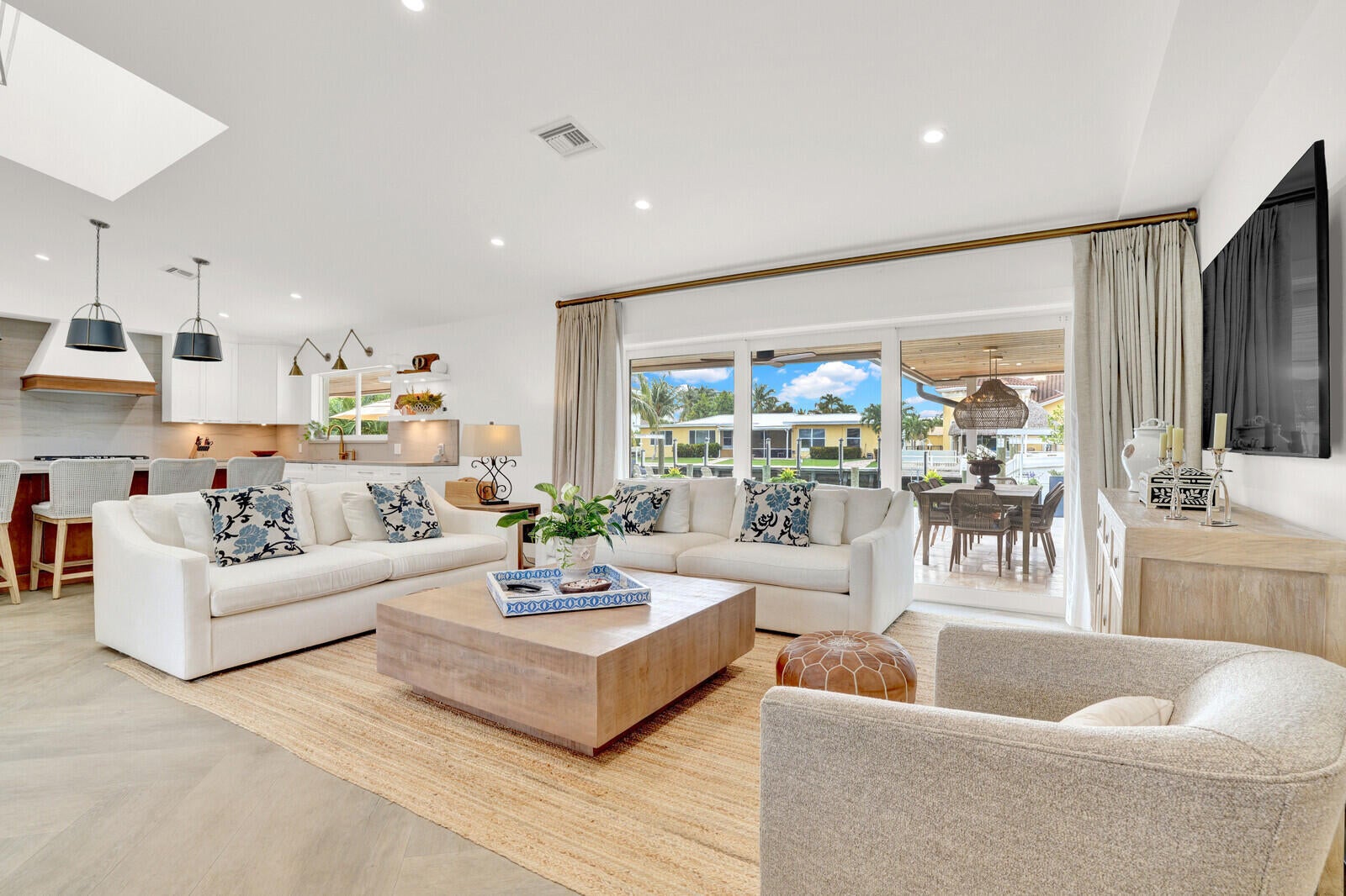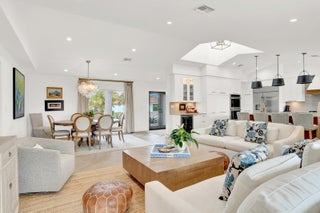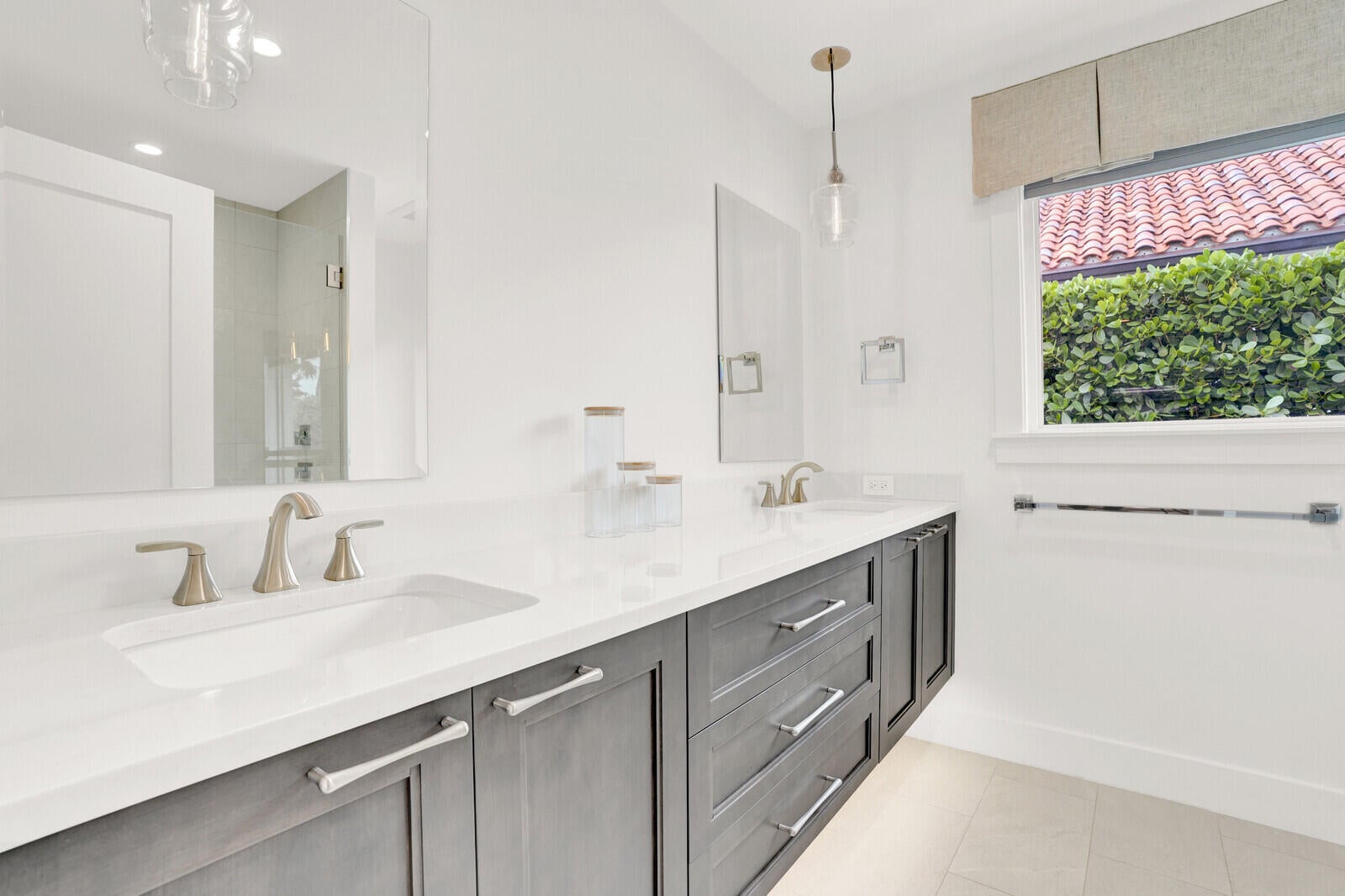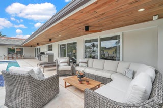 Specifically designed for ease of living for 4 individuals with 3 large bedrooms and an office or exercise room. All bedrooms have large en suite bathrooms designed with top brand finishes and stone, updated custom cabinetry and multiple lighting options from top company brands. Additionally, there is a laundry room with top end appliances and a full bath and an out door shower.The home also features beautiful herringbone patterned tile floors to resemble large plank wood throughout the house but, versatile enough for wetness, sand and high traffic.There is clear intention to maximize natural light throughout the home with a raised ceiling in the main areas that pinnacles in a stunning cupola. All lightning was carefully considered for day light, ambient light, recessed lighting andaccent or focal point lighting. Additionally, this home is styled for inside - outside living demonstrated in the large living room and master bedroom sliding doors that are able to be tucked flush and invite the owner to expand their living space into an outdoor kitchen, dining, sitting area and lounge by the stunning salt water pool with jacuzzi and its new dock with 24k lbs boat lift and double jetski lift. The kitchen features designer lighting, huge amount of storage in upper and lower custom cabinetry including two large pantry areas and maximized the lower part of the expanded island for additional storage. Included is a bar area with an ice maker and wine fridge and a second bar sink. The kitchen is fully equipped for entertainment with a warming drawer, microwave hutch, top of the line appliances a two convection ovens. No detail was left behind, even the landscaping was carefully considered to evoke a getaway resort oasis feel for the homeowners and has been dutifully maintained and includes an automatic watering system. Last, the homeowners also included a home generator as a back up in case of emergencies and a second refrigerator in the garage. This stunning home features all custom work with top of the line designer only brands in all its finishes and accents. And is also available with the furnishings included for an additional cost. Ensuring a one of a kind home in a stunning location with the beach 5 min walk away, and located beside the intracoastal or a 5 min. Boat ride to the inlet and the ocean if you prefer deep sea fishing. Not to mention a 10 min drive to Palm Beach Gardens or a 30 min drive to Palm Beach. This neighborhood is highly sought after for its attractive and key location that is secluded from the hustle and bustle of PBG by McArthur park reserve yet close enough to enjoy the many restaurants and areas of interest. Few homes ever go for sale in this neighborhood and if they do, they sell very competitively and quickly.