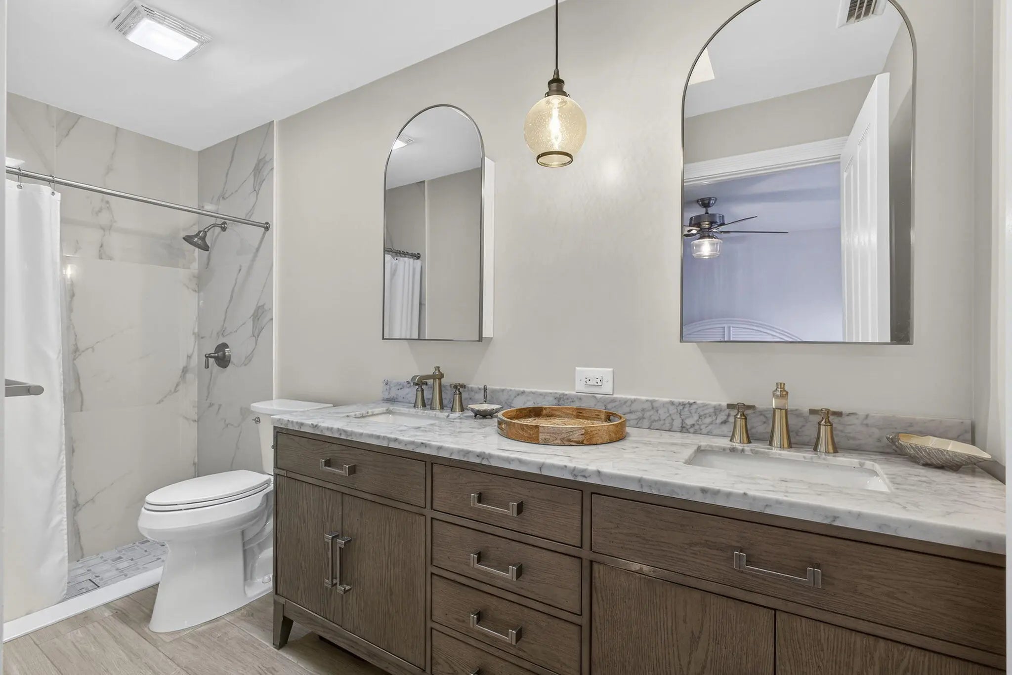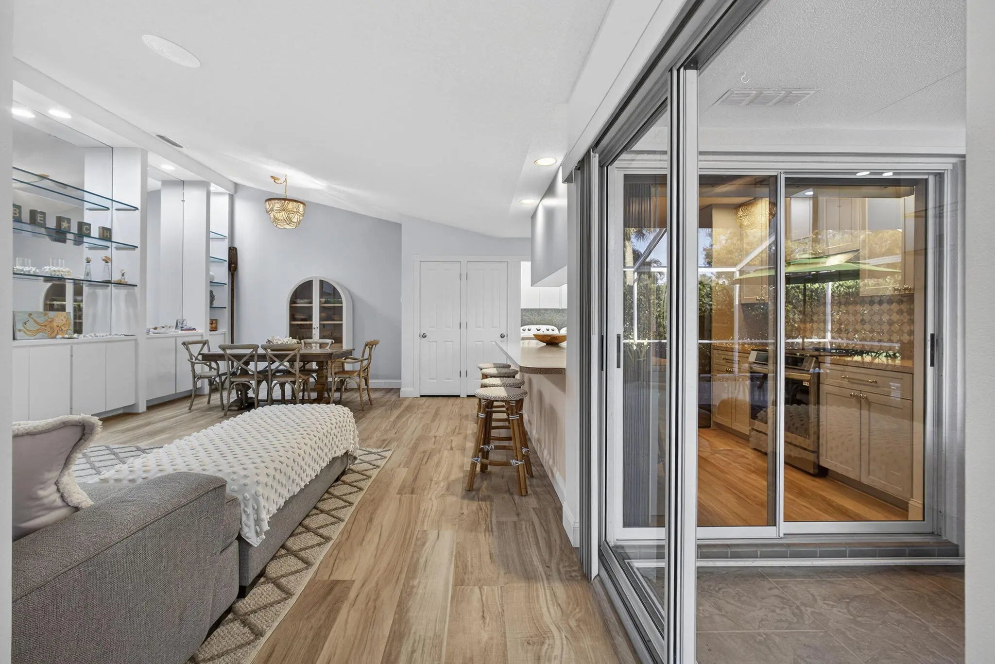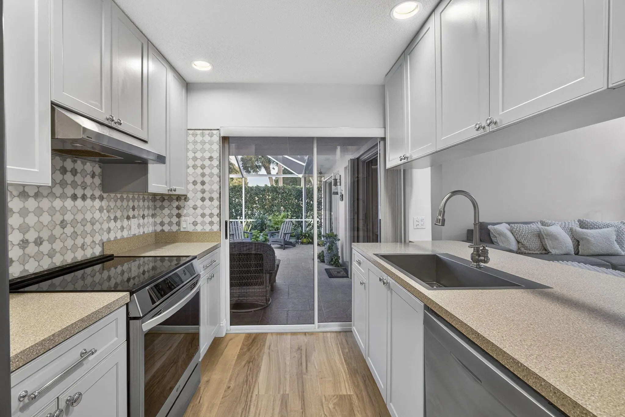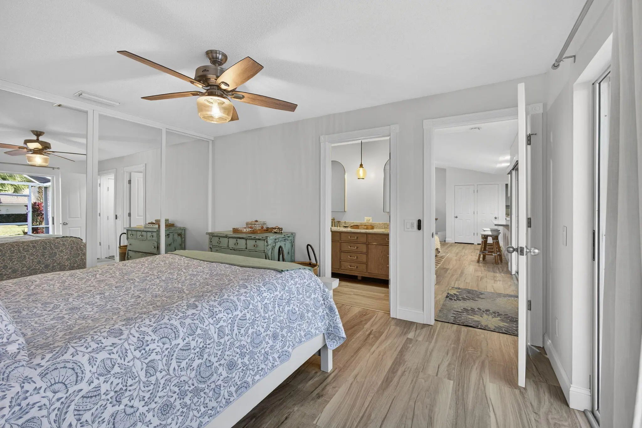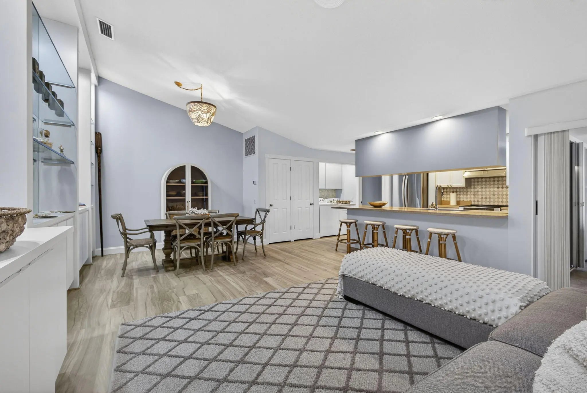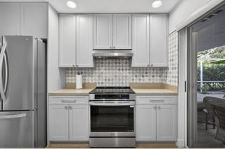 This beautifully updated, bright and airy unit offers a true move-in-ready experience with thoughtful upgrades throughout. The home features all new appliances, a brand-new air-conditioning system equipped with UV light, and a whole-house coconut carbon water purification system for enhanced comfort and peace of mind. Luxury vinyl plank flooring has been newly installed, complemented by fresh interior paint that enhances the home's light-filled, welcoming feel.The kitchen is tastefully appointed with Restoration Hardware cabinet hardware and a Moen kitchen faucet, while the recently renovated primary bathroom showcases Moen fixtures, West Elm medicine cabinets, and a coordinating designer light fixture. Both the primary and guest bedrooms are finished with brand-new Pottery Barn curtains,
