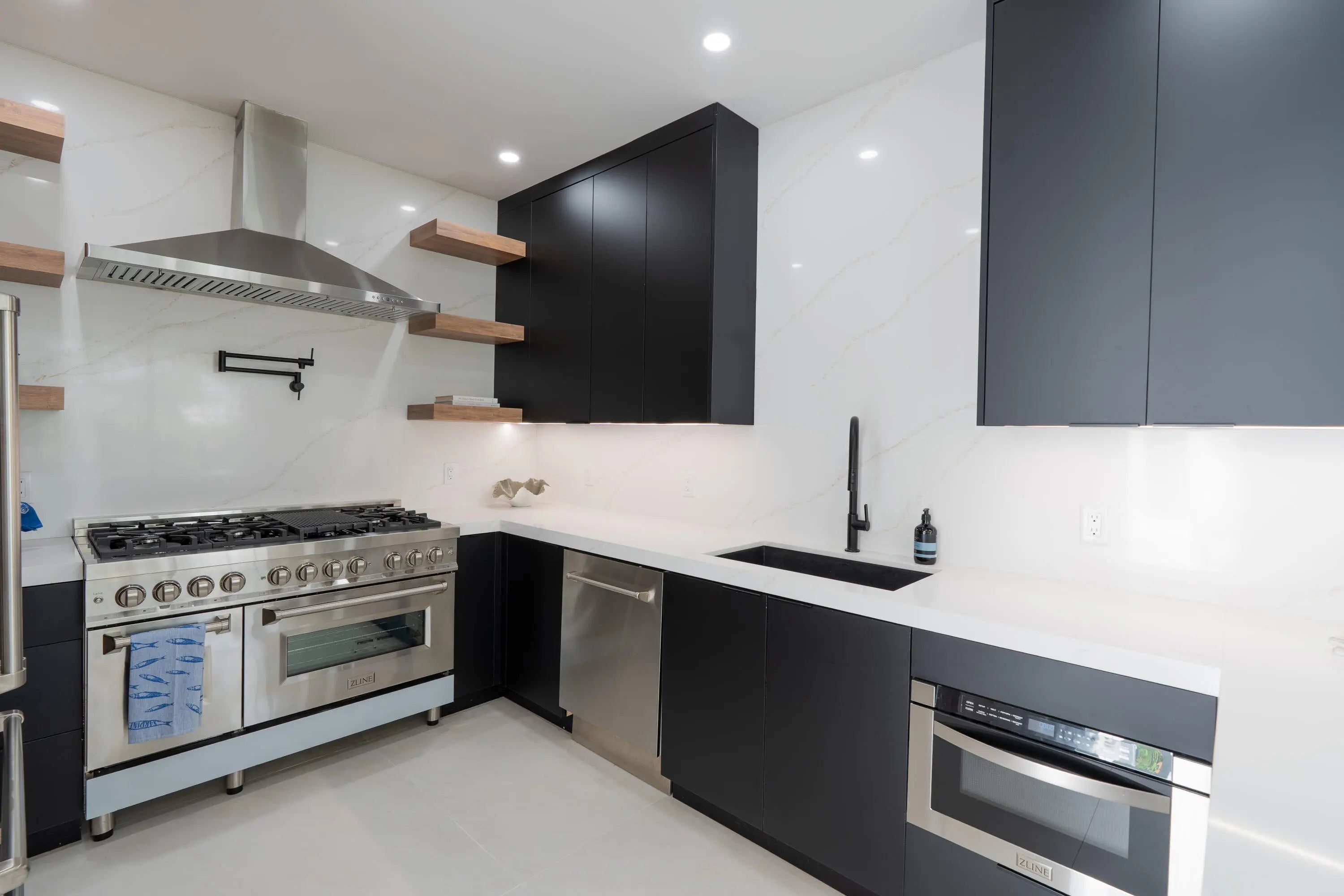Built-in Shelves, Closet Cabinets, French Door, Kitchen Island, Volume Ceiling, Walk-in Closet