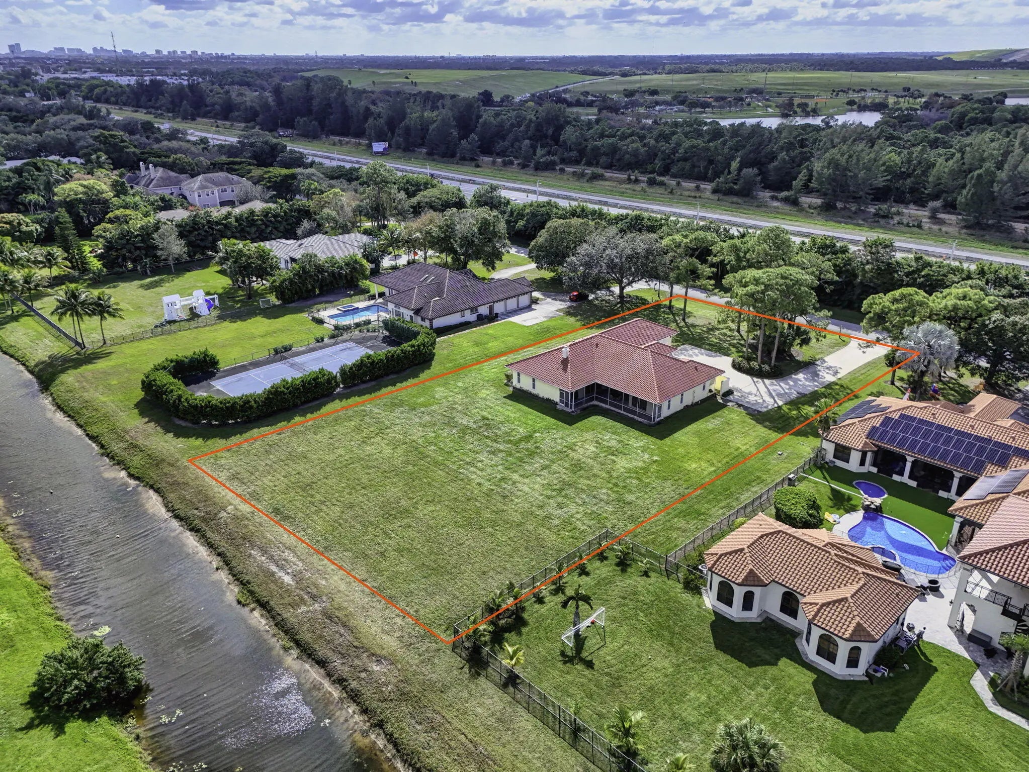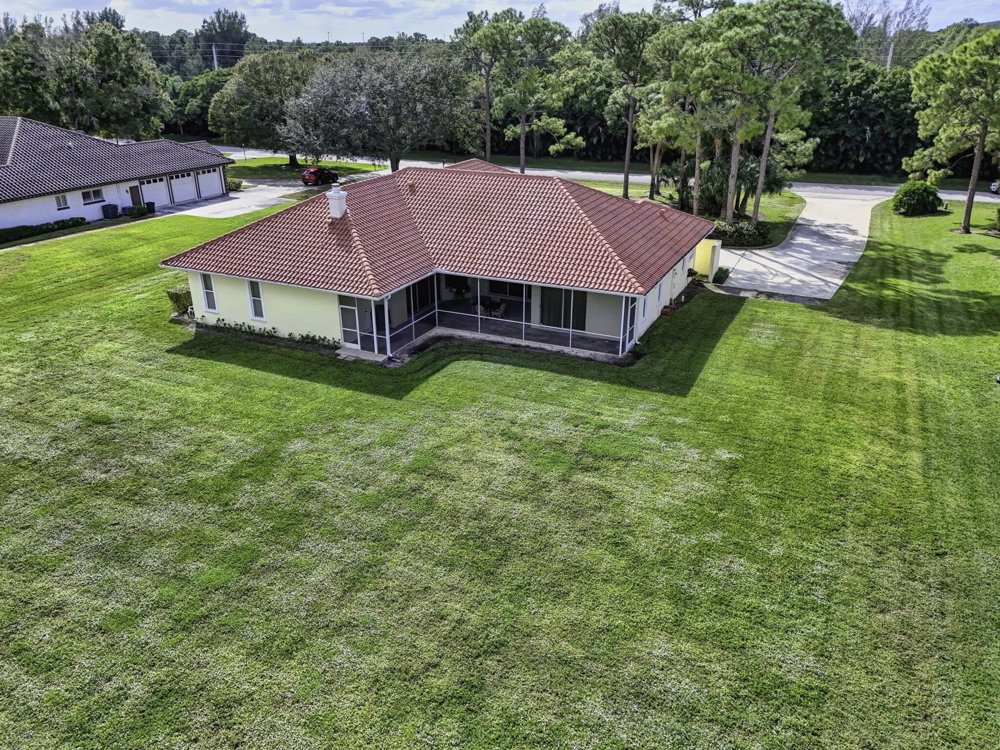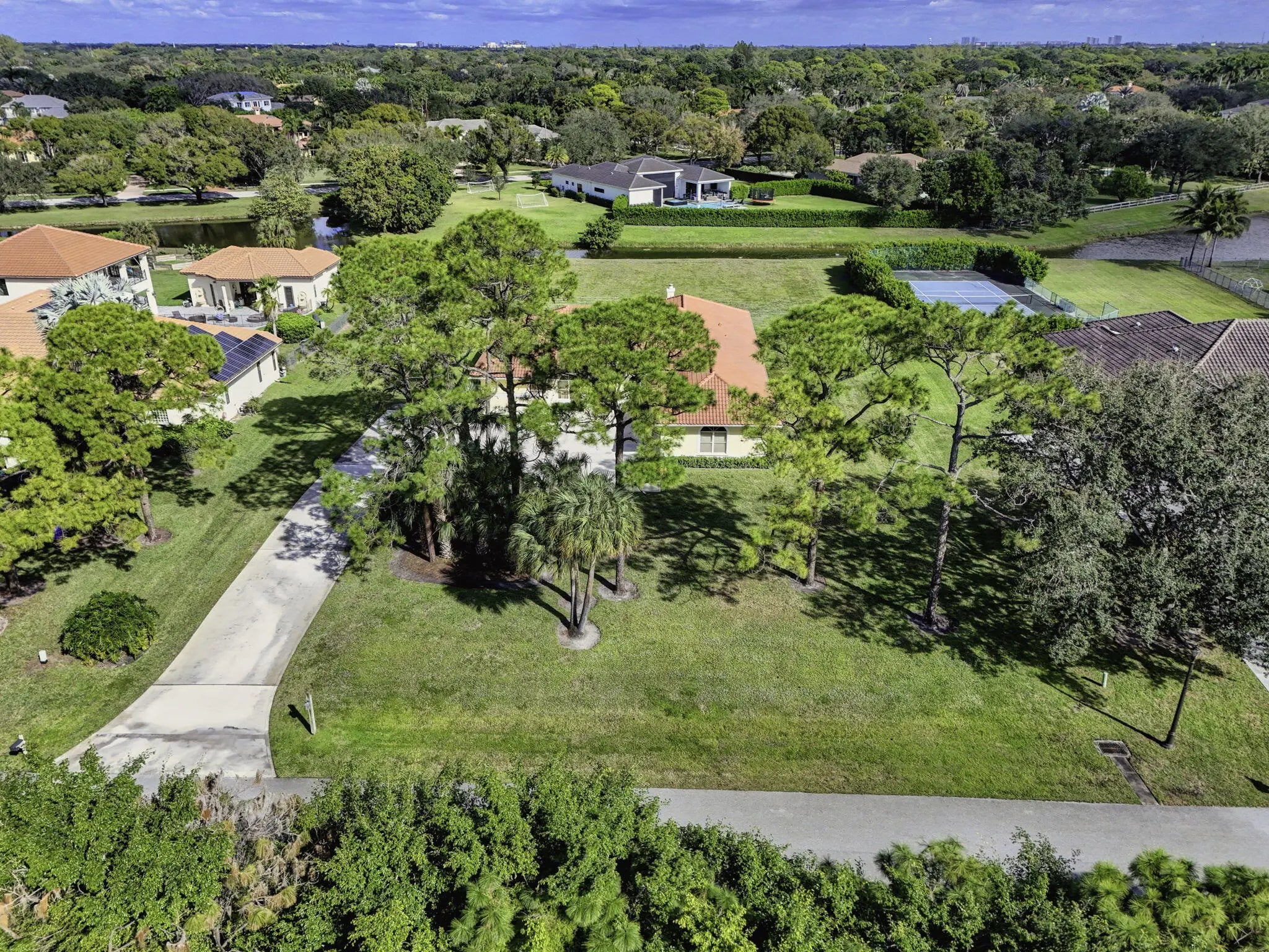 Palm Beach Gardens' most coveted gated enclave, Steeplechase, presents an exceptional opportunity to elevate and expand--creating your ultimate dream residence on a sprawling one-acre lot. This 4-bedroom, 3-bath home offers timeless architectural character and a solid foundation, featuring a dramatic natural coral fireplace, newer kitchen cabinetry with soft-close doors, and custom built-ins throughout. A new roof installed in 2023 provides lasting value and peace of mind.Designed for both privacy and lifestyle, the three-car garage and expansive driveway create a true car enthusiast's dream. Enjoy serene mornings with only mature trees as your front-door view, and unwind on the screened patio overlooking tranquil lake views while listening to the soothing sounds of the fountain.