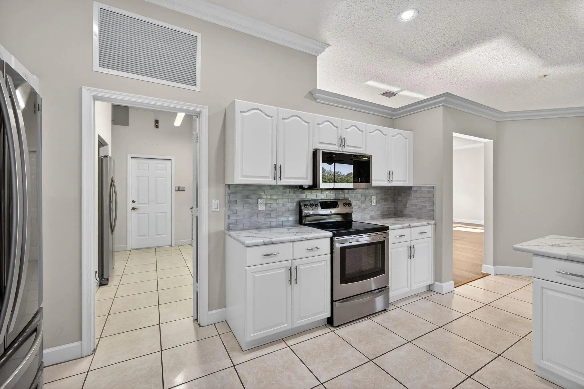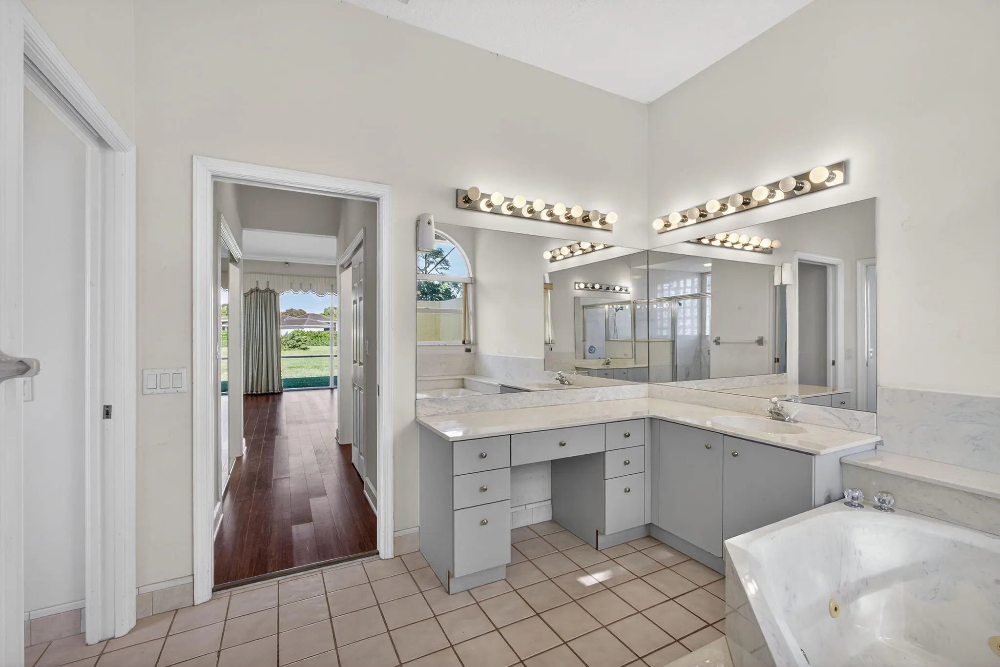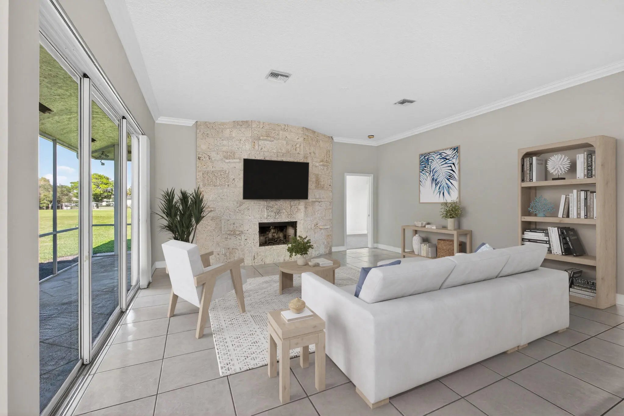 Palm Beach Gardens' most coveted gated enclave, Steeplechase, presents an exceptional opportunity to elevate and expand--creating your ultimate dream residence on a sprawling one-acre lot. This 4-bedroom, 3-bath home offers timeless architectural character and a solid foundation, featuring a dramatic natural coral fireplace, newer kitchen cabinetry with soft-close doors, and custom built-ins throughout. A new roof installed in 2023 provides lasting value and peace of mind.Designed for both privacy and lifestyle, the three-car garage and expansive driveway create a true car enthusiast's dream. Enjoy serene mornings with only mature trees as your front-door view, and unwind on the screened patio overlooking tranquil lake views while listening to the soothing sounds of the fountain.