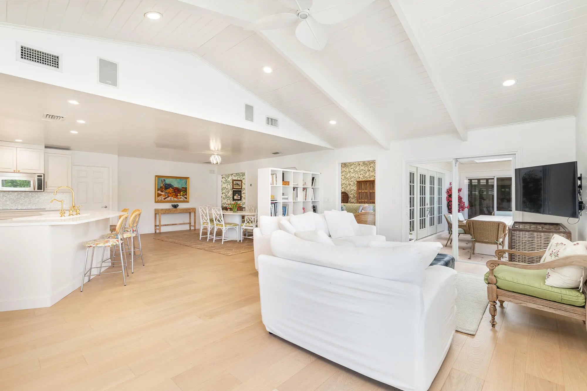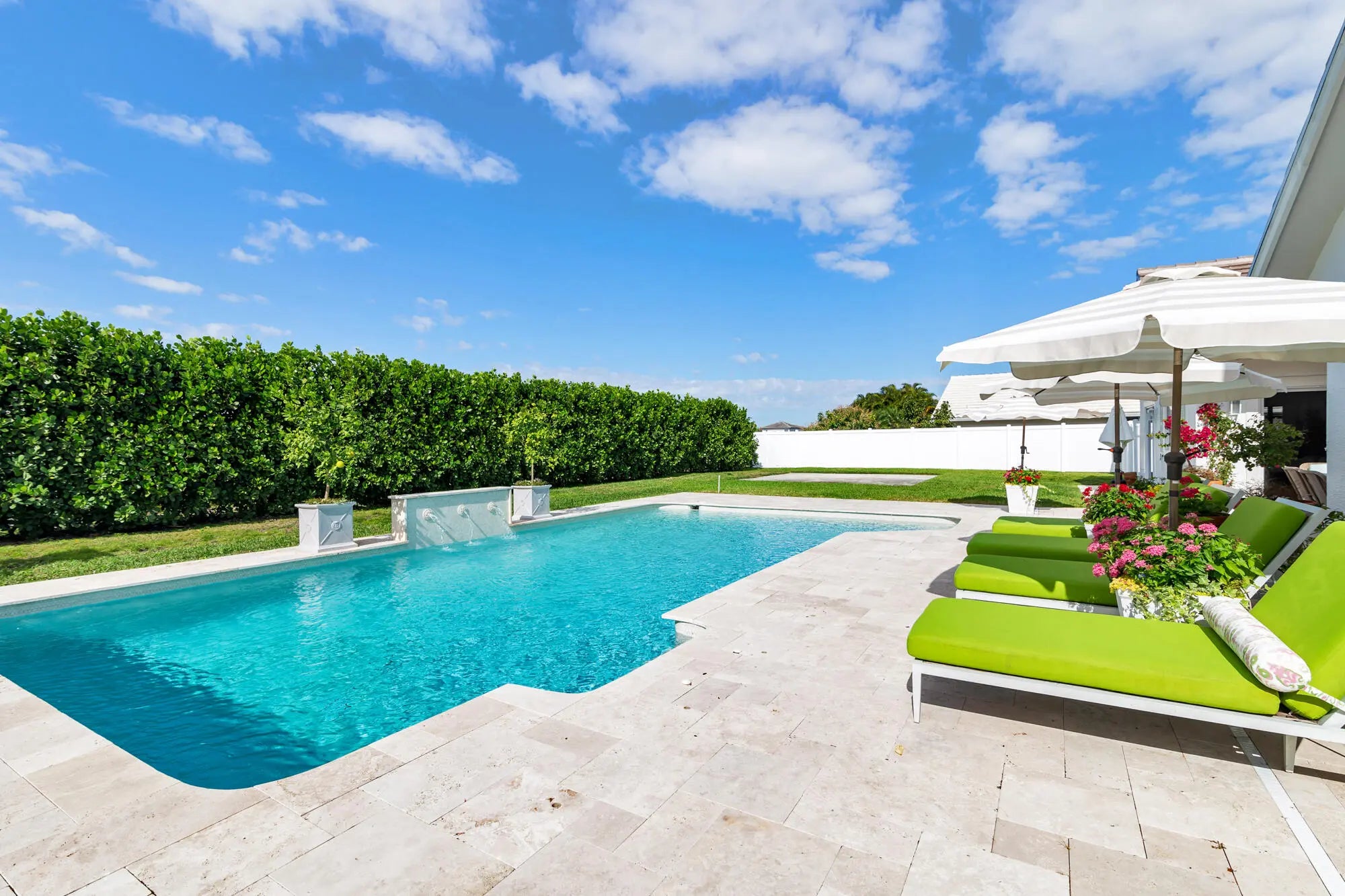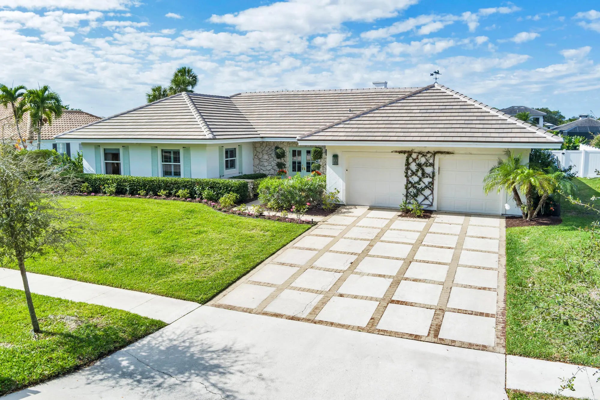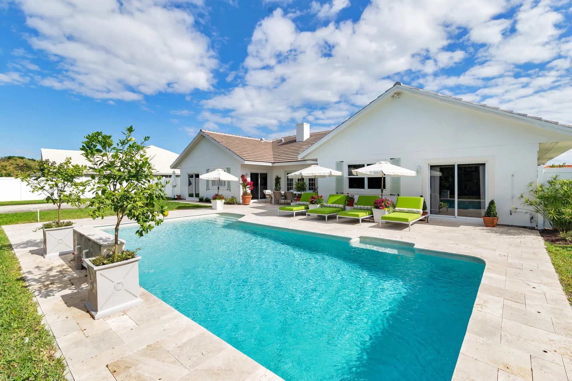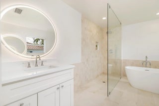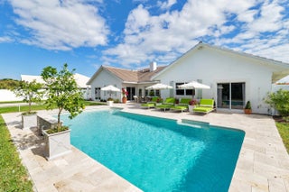 Beautifully renovated home in the exclusive Presidential Estates. This fully remodeled 3 bed 3 bath residence in West Palm beach is situated on an oversized lot overlooking the canal, and walking distance to Dutchman's Pipe Golf Club and the Belgrove Hotel. The home was fully remodeled in 2024 with new interior and exterior paint, brand new bathrooms, new kitchen quartz countertops and updated kitchen cabinetry, newly resurfaced pool, all new exterior landscaping, perimeter fencing, beautiful wide plank oak floors, and new roof. Additional features include a large chef's kitchen, vaulted ceilings, impact glass throughout, oversized yard and outdoor entertaining space, expansive primary bedroom with sitting room and walk in closets, dual vanity primary bath and large soaking tub,