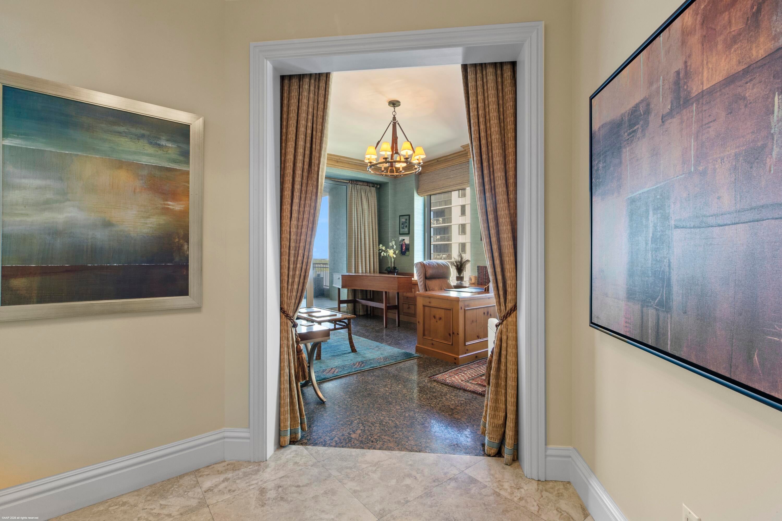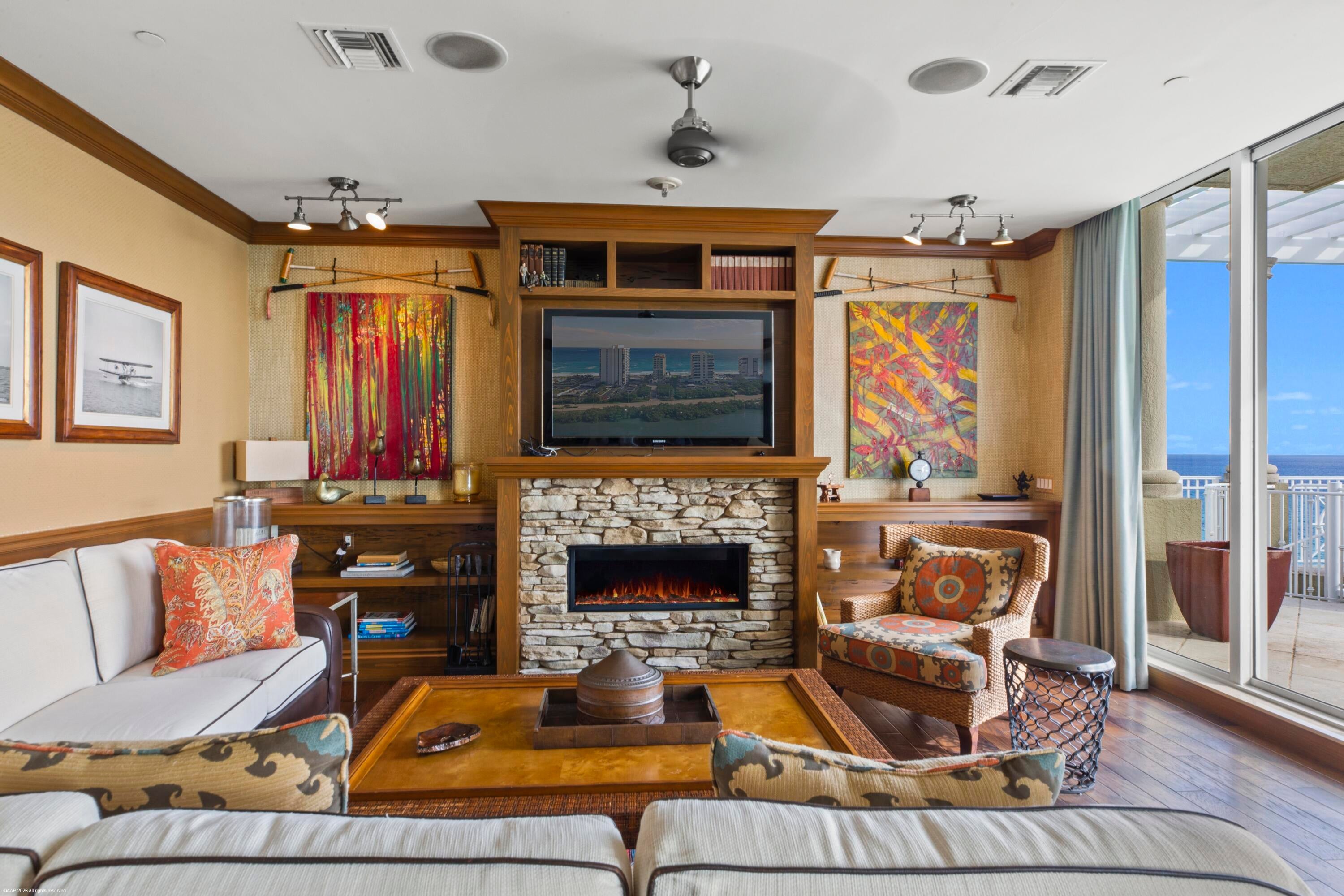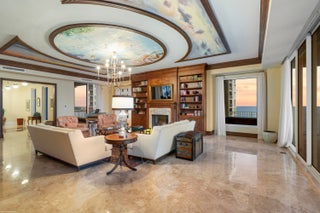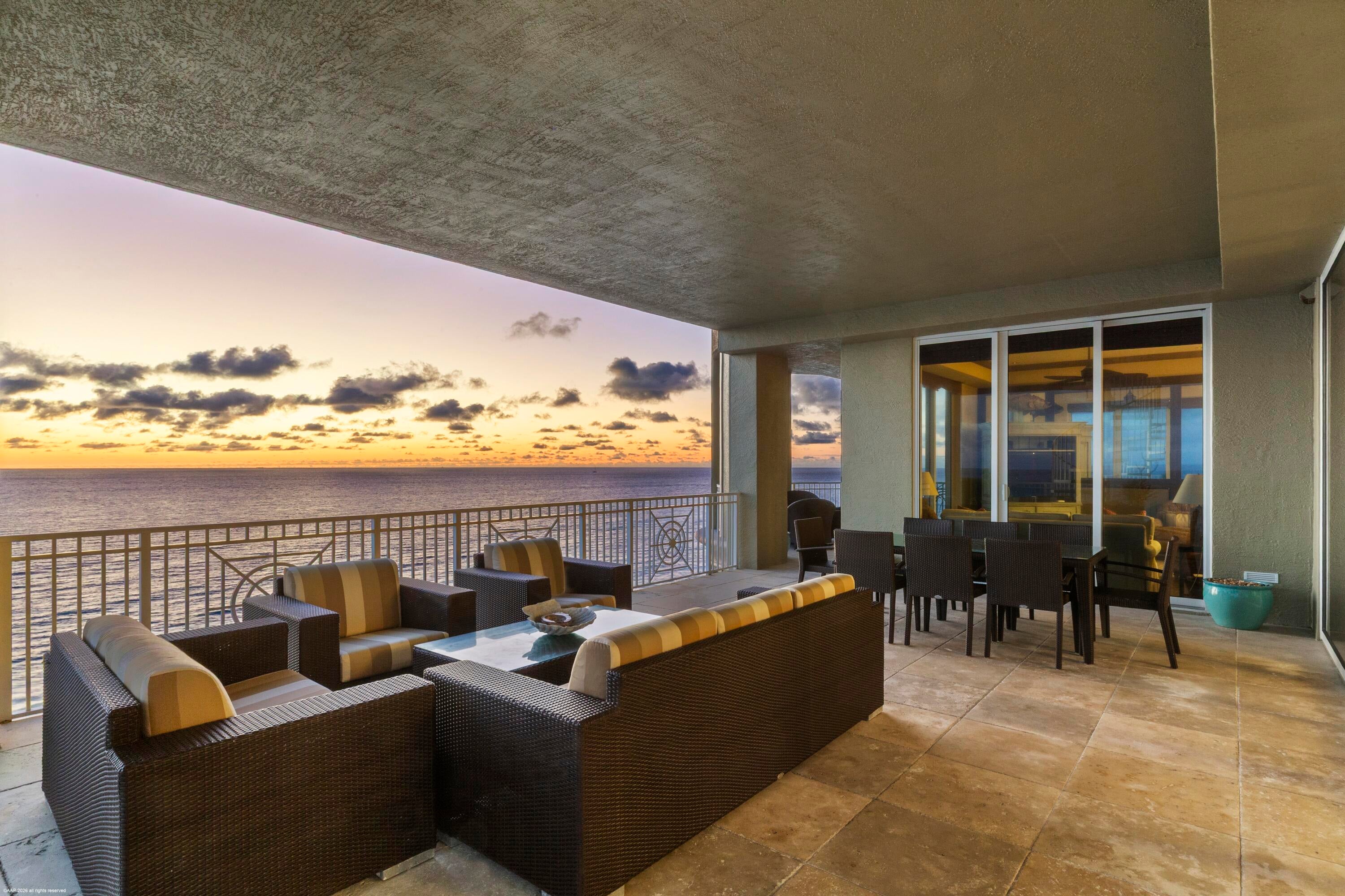 Perched atop ultra-exclusive One Singer Island (15 residences), this commanding two-story sky home delivers sweeping Atlantic-to-Intracoastal panoramas. 6,000 SF under air plus ~3,500 SF of terraces offers 3 bedrooms, 6 baths, a private office/Florida room, a majestic great room, & an ~800 SF upper-level sky lounge with fireplace, kitchenette, & half bath. The great room stuns with an 11' hand-painted ceiling & gas fireplace with illuminated onyx base. Formal dining & TV den/breakfast room. Seven terraces + Juliet balcony capture sunrise oceanfront & sunset Intracoastal--plus 2 Jacuzzis. Spiral stair to a breathtaking huge upper oceanfront terrace. Intra-coastal waterway terrace is equally stunning for sunsets. The pinnacle of boutique penthouse living on Singer Island--don't miss this gemWelcome to a true sky-estate: a direct oceanfront penthouse with sweeping, cinematic views of both the Atlantic Ocean and the Intracoastal Waterway, offered within the rare privacy of One Singer Island. WCI's ultra-luxury "One" designation (only three buildings statewide share this distinction). Spanning 6,000 square feet under air and complemented by 3,500 square feet of terraces, this residence is built for the buyer who wants scale, presence, and effortless indoor-outdoor living a one-of-a-kind penthouse in a one-of-a-kind boutique building. Designed for impact and for living, the floor plan includes 3 bedrooms, 3 full bathrooms, 2 half bathrooms, plus a private office/Florida room adjacent to the primary suite. The grand great room is visually unforgettable, featuring a hand-painted 11-foot ceiling and a gas fireplace with a backlit onyx lower panel, along with a formal dining area and TV den/breakfast area all framed by the endless ocean-and-beach backdrop that makes Singer Island so coveted. Completing the experience is a breathtaking ~800 sq. ft. private sky lounge on the second level with an additional huge oceanfront terrace. Seven terraces. Endless perspectives. Outdoor living is elevated to an art form with seven terraces (plus a Juliet balcony) each capturing a different angle of coastline, skyline, and waterway. The expansive oceanfront balcony is the signature setting for sunrise coffee, ocean breezes, and panoramic Atlantic views. The Intracoastal terrace delivers a different mood entirely glowing evening vistas and a Jacuzzi for relaxing or entertaining under the shoreline lights. A spiral staircase rises from the lower oceanfront terrace to an extraordinary upper-level oceanfront patio with its own jacuzzi, creating a private outdoor retreat that feels worlds above everything else. The ultimate second-level bonus: your private sky lounge The second level features an incredible bonus room of approximately 800 square feet under air, with another fireplace, a half bath, and a kitchenette ideal as a game-day lounge, cocktail salon, media retreat, or elevated hosting space that separates beautifully from the main living level. It is clad in truly stunning pecky cypress wood. Luxury finishes and a serious chef's kitchen The gourmet kitchen is equipped for true cooking and entertaining with a 48" Sub-Zero refrigerator, Wolf appliance package, double ovens, warming drawer, microwave, gas cooktop, wine cooler, Miele built-in coffee system, and granite countertops. Additional highlights include marble and wood floors, custom inlays, custom built-ins, custom window treatments & plantation shutters, and two premium parking spaces. Many fine upgrades and top-shelf finish run throughout, including a large air-conditioned storage room off the laundry and a huge storage cage in the ground-floor air-conditioned storage room. Boutique building. Full-service lifestyle. One Singer Island offers boutique, full-service living for an intimate ownership group, with dedicated staff and exceptional amenities, including: - Oceanfront heated pool and spa - Direct beach access - Oceanfront dog park & additional area for dogs - Bicycle storage - Beautiful wood boardwalk with front-entry access for walks - State-of-the-art fitness center (almost never crowded) - Private theater with stadium seating and advanced A/V - Elegant club room with bar and seating - Versace-inspired outdoor patio with fireplace - Catering kitchen for parties and events - Wine room wt. temperature-controlled lockers/tasting tables - Concierge service (daily coverage 7:00am-11:00pm) Custom Interior Features - Wet bar in the den/TV room - Mirrored accent wall in the den/TV room - Onyx flooring in the entry foyer - Two custom floor inlays - Decorative wall paneling in great room - Custom built-in bookcase in the great room - Custom tile fireplace surround with illuminated onyx base - Custom built-in desk, cabinetry, and shelving in the office - Custom wainscoting in the office - 2 gas fireplaces (in great room and upstairs sky lounge) - Custom stone fireplace surround in sky lounge - Pecky Cypress clad wet bar, built-ins & wainscoting in sky lounge Situated on the quieter end of Singer Island, this gated beachfront enclave offers a level of tranquility buyers rarely find such as a quiet beach, miles of walkability, and frequent wildlife sightings (manatees, rays, and more). This isn't just penthouse living it's a Florida oceanfront experience.