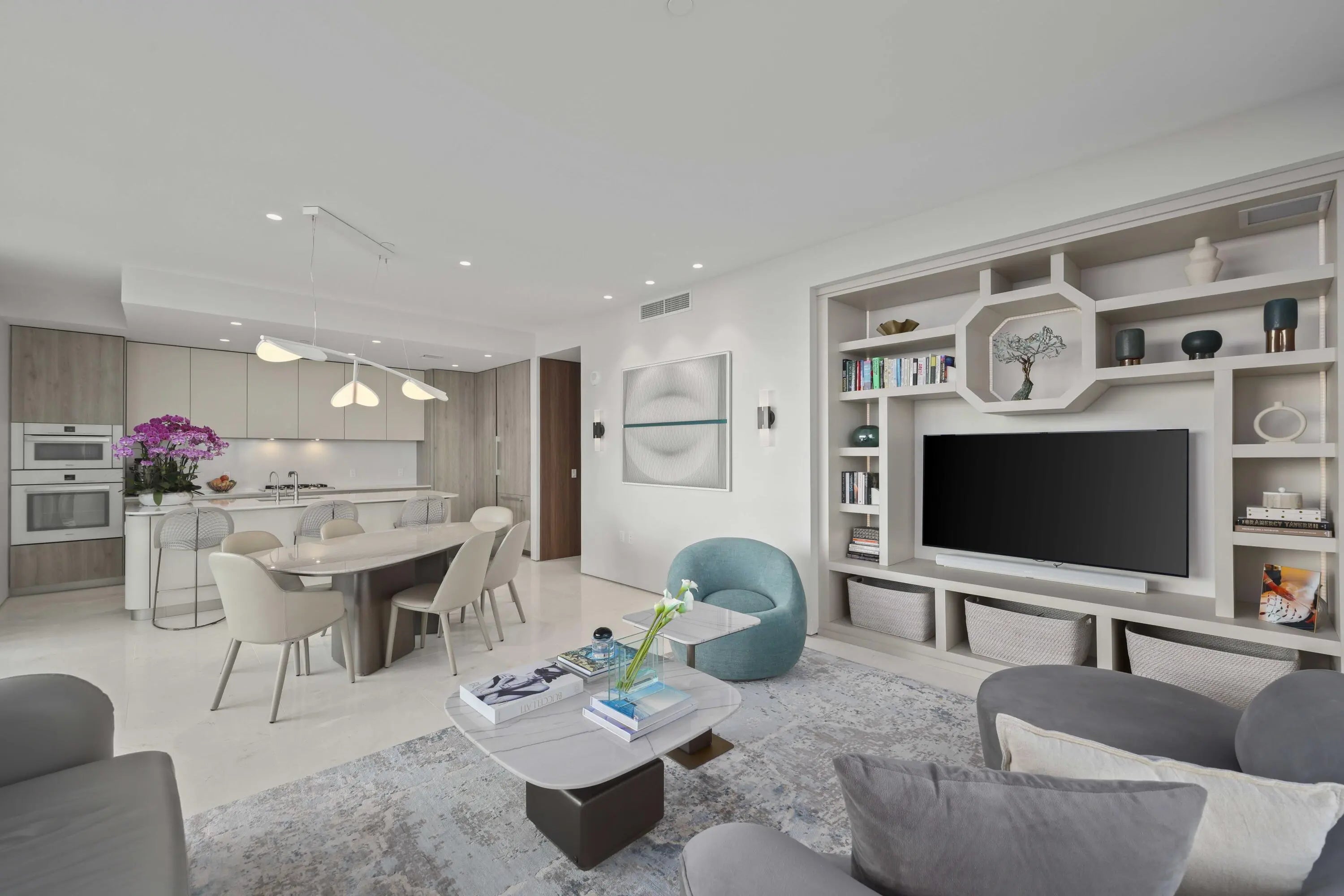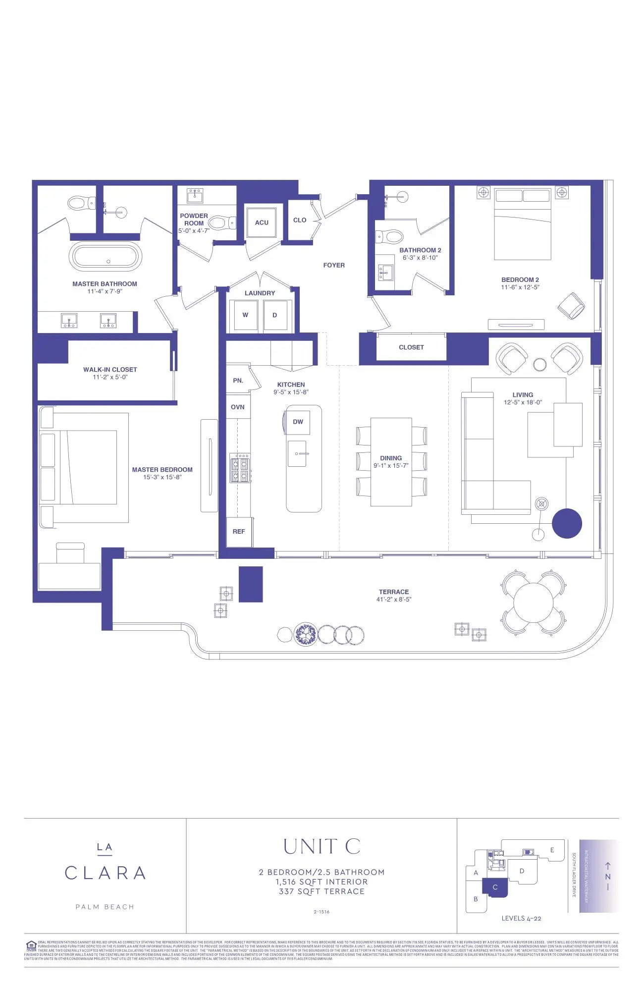 NEW, Turn-key, move-in ready residence with stunning waterfront views. Enjoy an open floor plan with water views from every room. Features include a chefs kitchen with Miele appliances, a gas cooktop, limestone flooring, spacious walk-in closets and more. La Clara is a full-service waterfront building offering 24-hour security, on-site management, fitness center, sauna, resident lounge, business center, gated access, and bike storage. Ideally located just minutes from Palm Beach, downtown West Palm Beach dining, shopping, and beaches. Two covered garage spaces included. Pet-friendly. Turnkey luxury living.