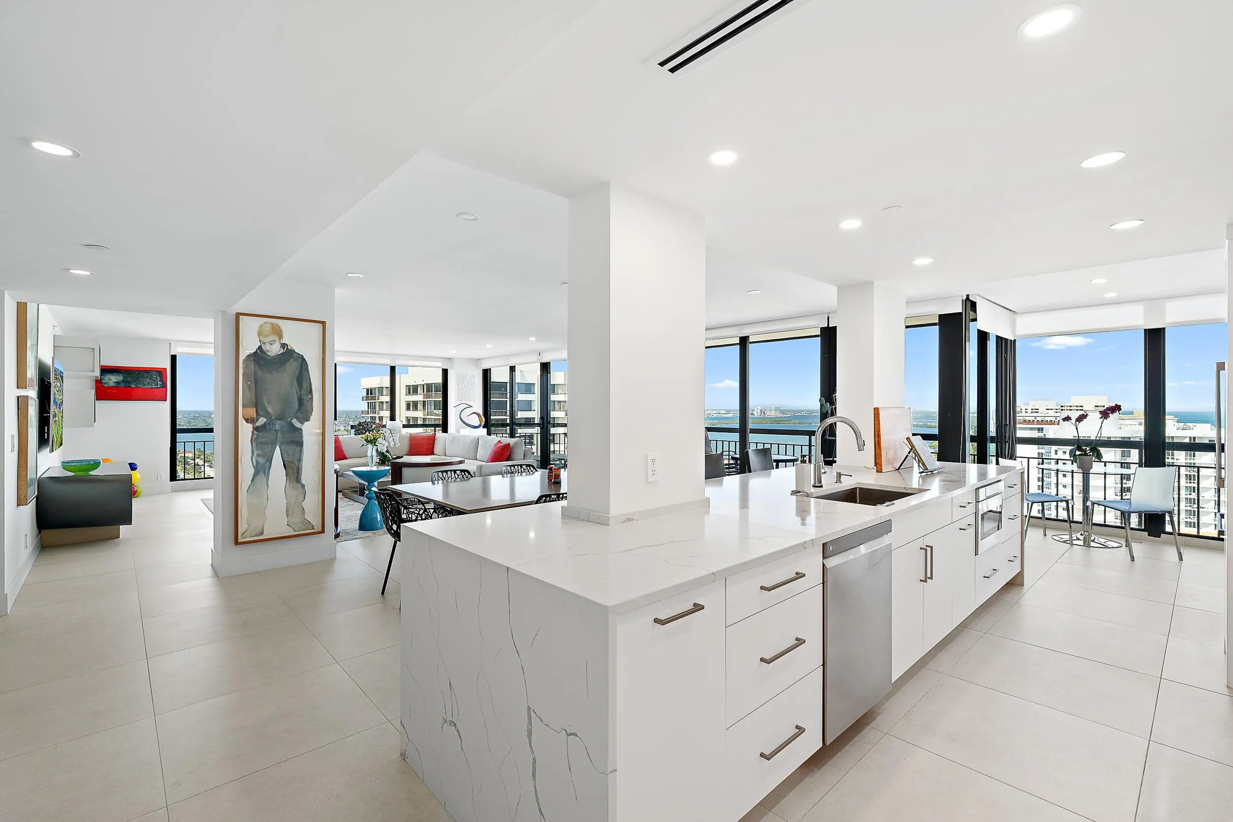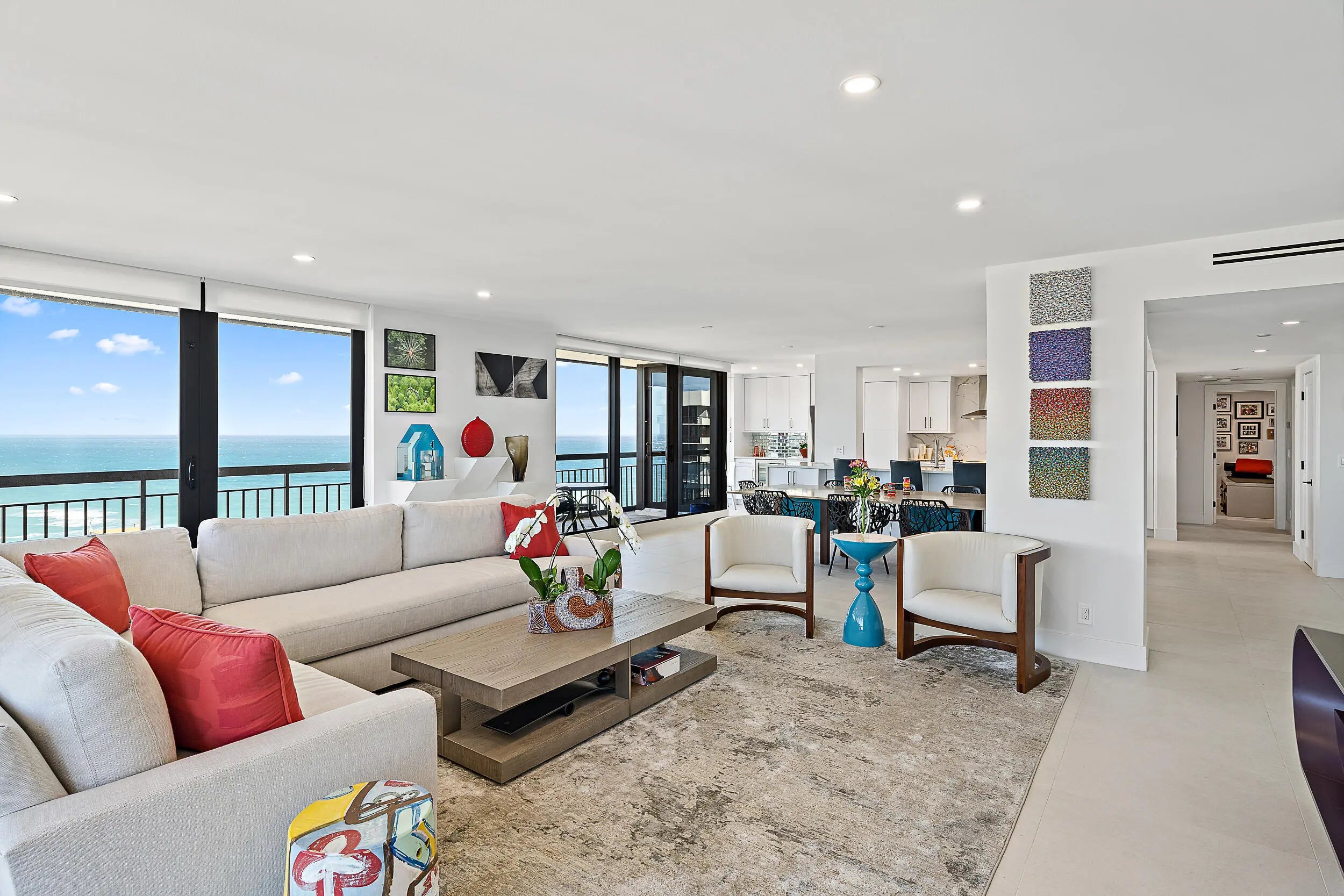 Exquisite oceanfront lower penthouse suite has been meticulously renovated for luxurious coastal living ready for you to experience beachside elegance. This 2,000+ sq. ft retreat boasts ocean and Intracoastal views while relaxing on the expansive balcony overlooking the beach and Intracoastal waterway with breathtaking sunsets. A separate office /3rd bedroom was designed off the primary suite for a thoughtful flow through floor-plan. Open concept kitchen with custom cabinetry and hardware, top-of-the line appliances and exceptional details throughout including impact glass and wrap-around shutters with window shades in every room. Martinique II offers a totally carefree lifestyle with direct private beach access! Amenities include a private resident poolside restaurant, two heated