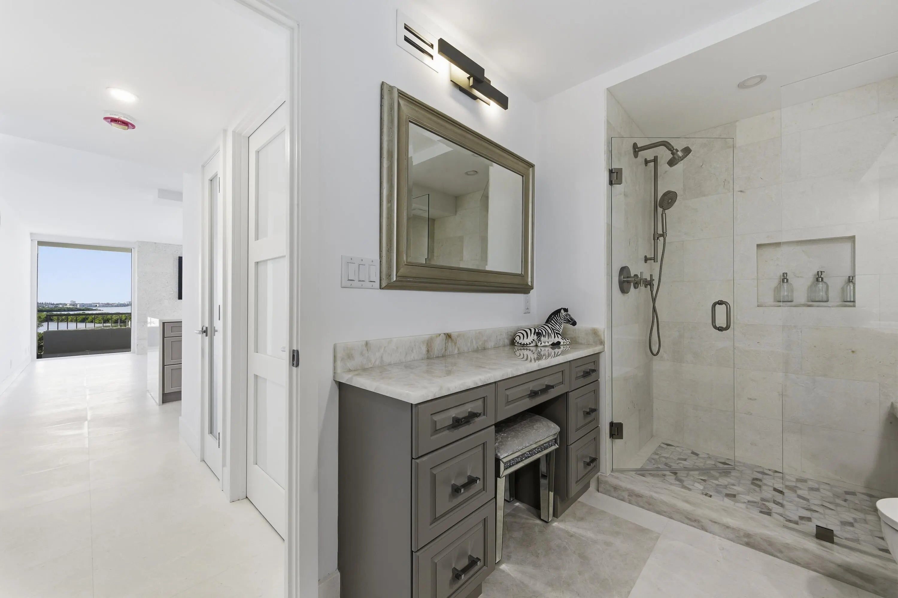 Experience luxury living that will exceed your expectations! Panoramic oceanfront living in one of the most desired buildings and stacks at Water Glades! Experience a lavishly designed & decorated 7th floor residence where sunrise and sunset are viewed from expansive floor-to-ceiling high-impact glass. This 2-bedroom, 2-bathroom condo offers the best of both worlds, with breathtaking oceanfront and intracoastal views. The total custom-designed and completely renovated apartment includes only the finest quality materials, built by one of the premier builders in the area. The residence, completed with Level 5 finishes throughout, features honed snow-white marble floors, a striking natural coral stone fireplace, and walls of floor-to-ceiling impact glass and sliders opening to a