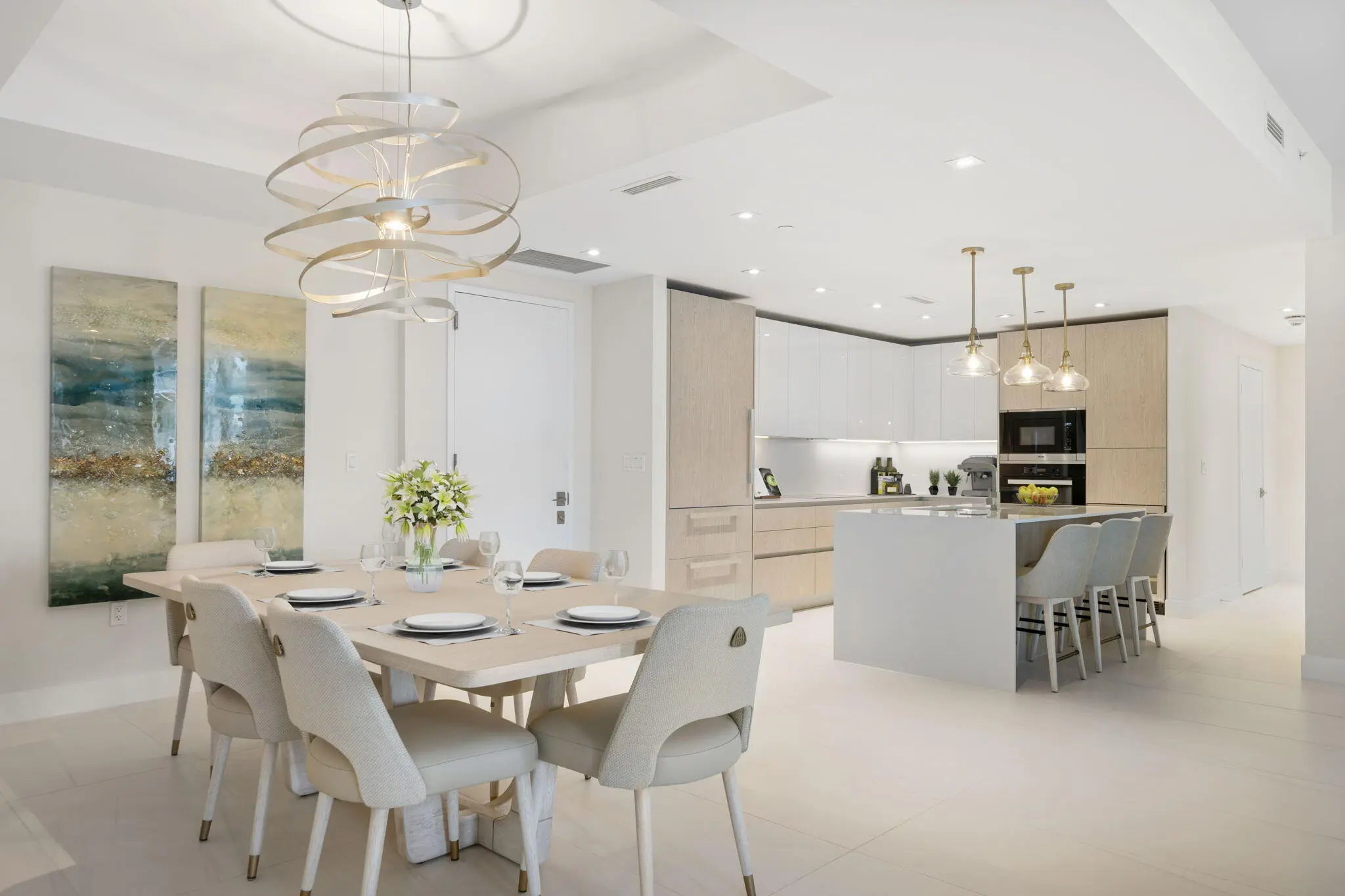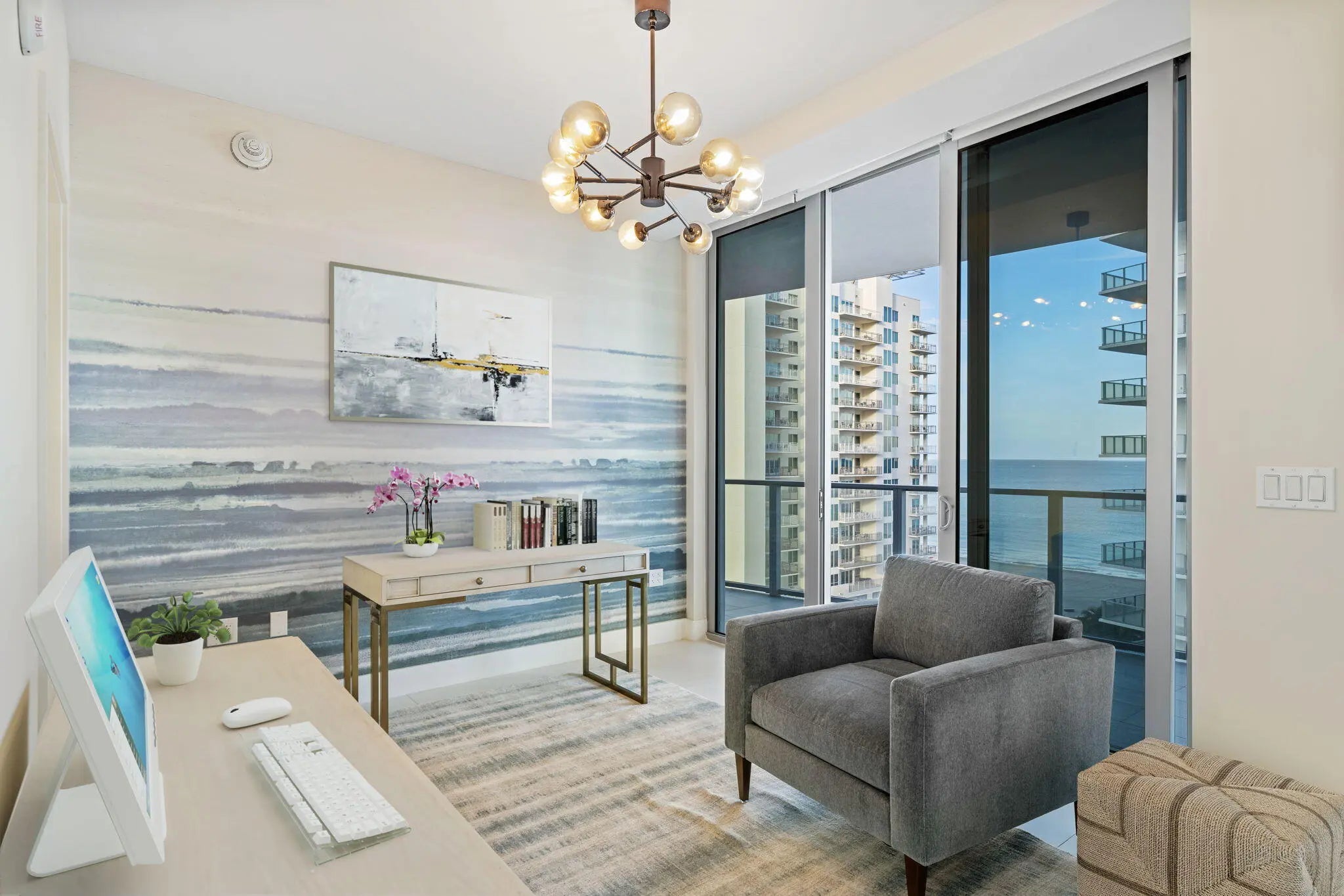 Step into sophisticated luxury at Amrit Ocean Resort & Residences. This spacious unit boasts two-bedrooms, three-bathrooms, and a convertible den-to-bedroom option. Interior Design by Clive Daniel Home, this new construction beachfront offering comes turnkey and fully furnished. No design detail was spared, replete with Phillip Jeffries wallcoverings, designer lighting fixtures, custom closets. An intelligently designed floor plan relentlessly prioritizes privacy without compromising direct ocean views from each room. Whether sipping sunrise cappuccinos from your sprawling terrace, or enjoying evening dinners with friends and family, this home fully encompasses everything South Florida has to offer. Amrit boasts a membership-based wellness program and access to a 100,000 sqft. facility.