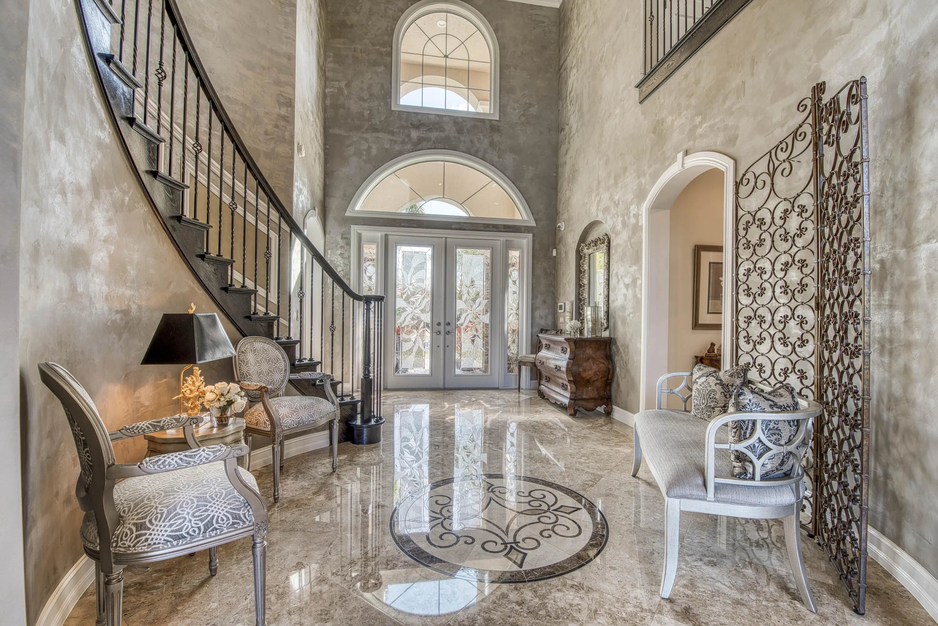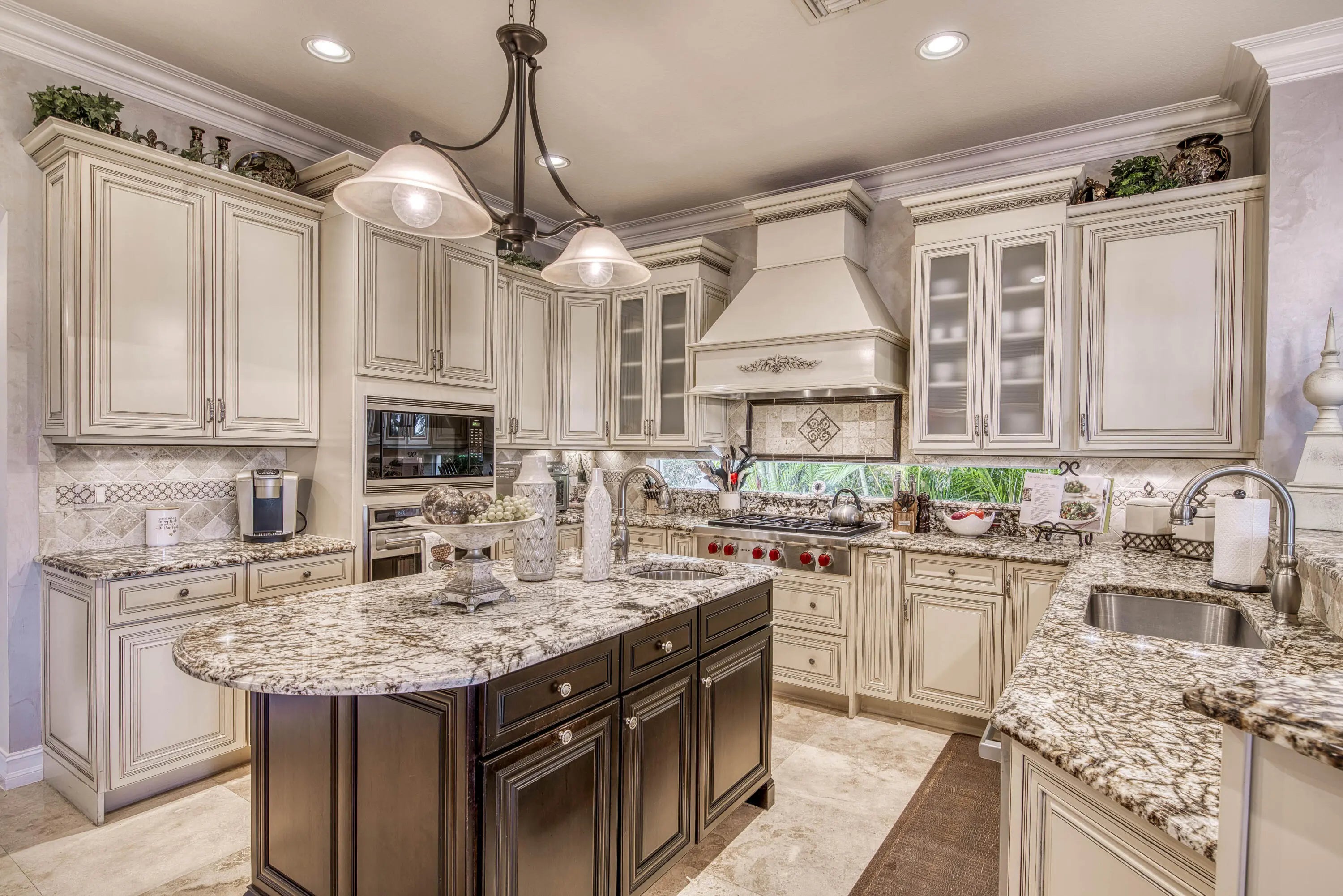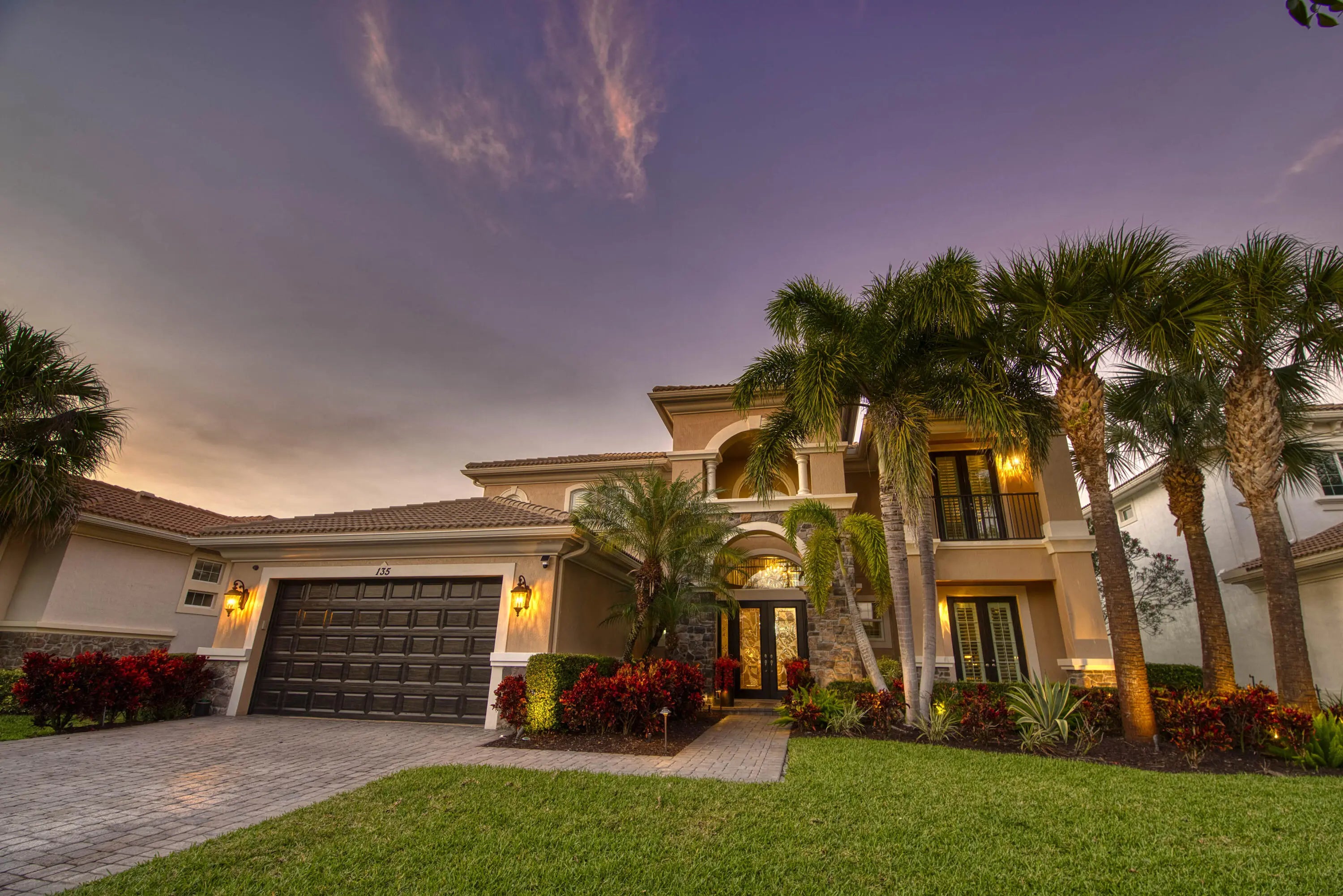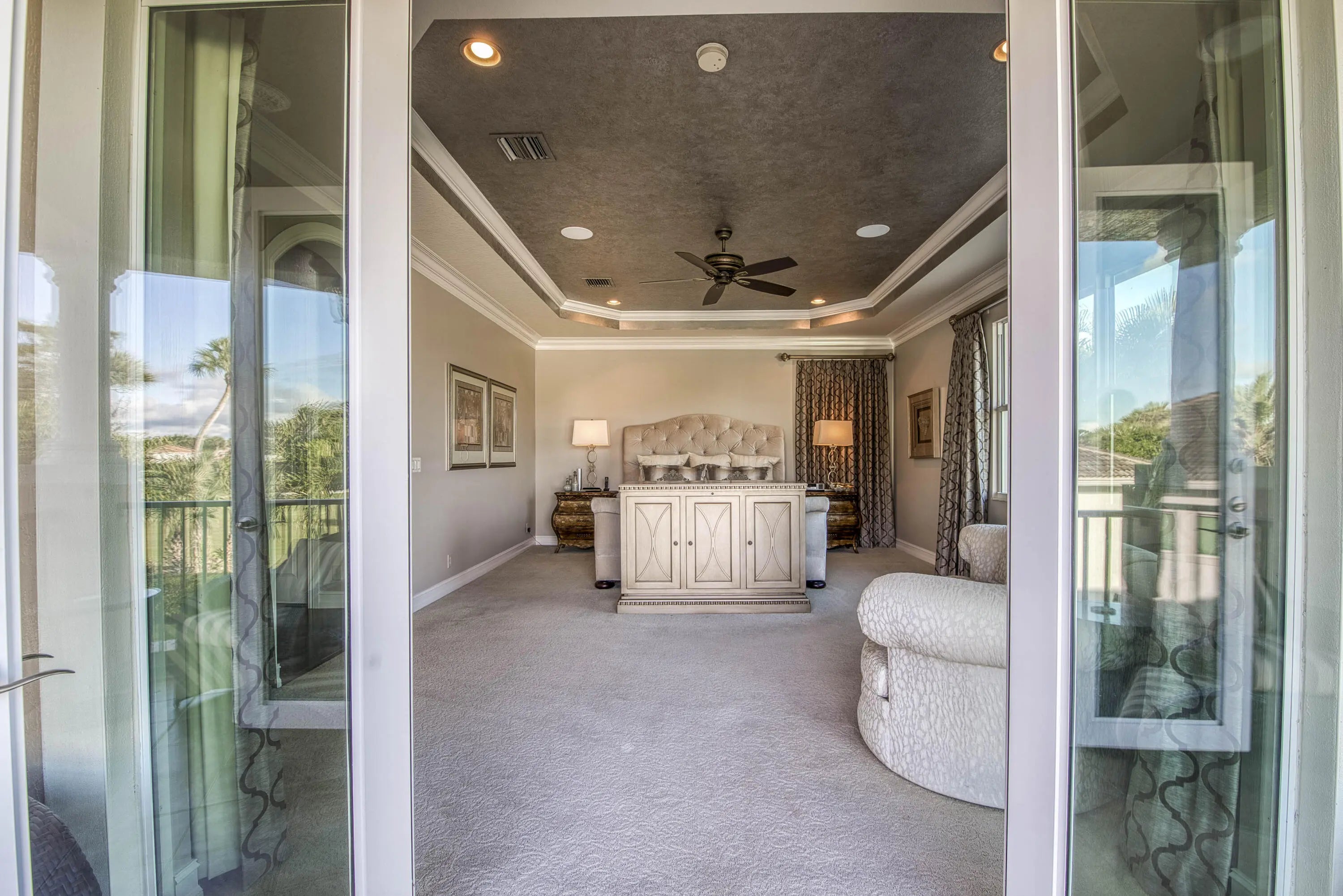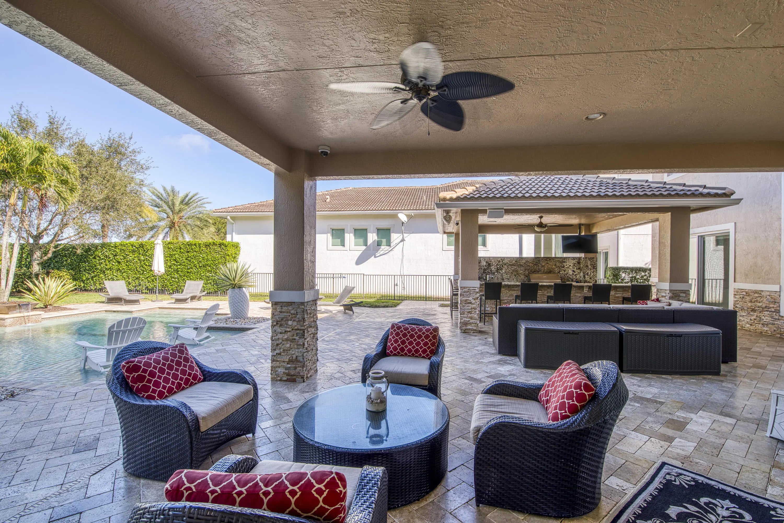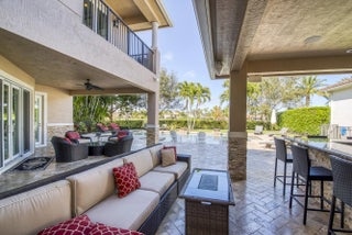 Exquisite Treanna model situated on a premium homesite in the luxury gated community of Jupiter Country Club. This stately 2 story home offers nearly 5,300 sf with 5 bedrooms, 5 baths, an office, flexible loft space, 3 car garage and a ONE-OF-A-KIND custom outdoor kitchen & bar. This coveted street & location offers serene golf course & dual lake views. Interior designer upgrades include marble & hardwood flooring, large scale crown molding, keystone trimmed entryways, custom built-in storage in closets & pantry, plantation shutters, elegant chandeliers, and so much more! Live comfortably in this energy efficient home with a whole house generator, natural gas, water softening system, CBS construction, impact glass windows & doors. The custom impact glass front doors with sidelites welcome