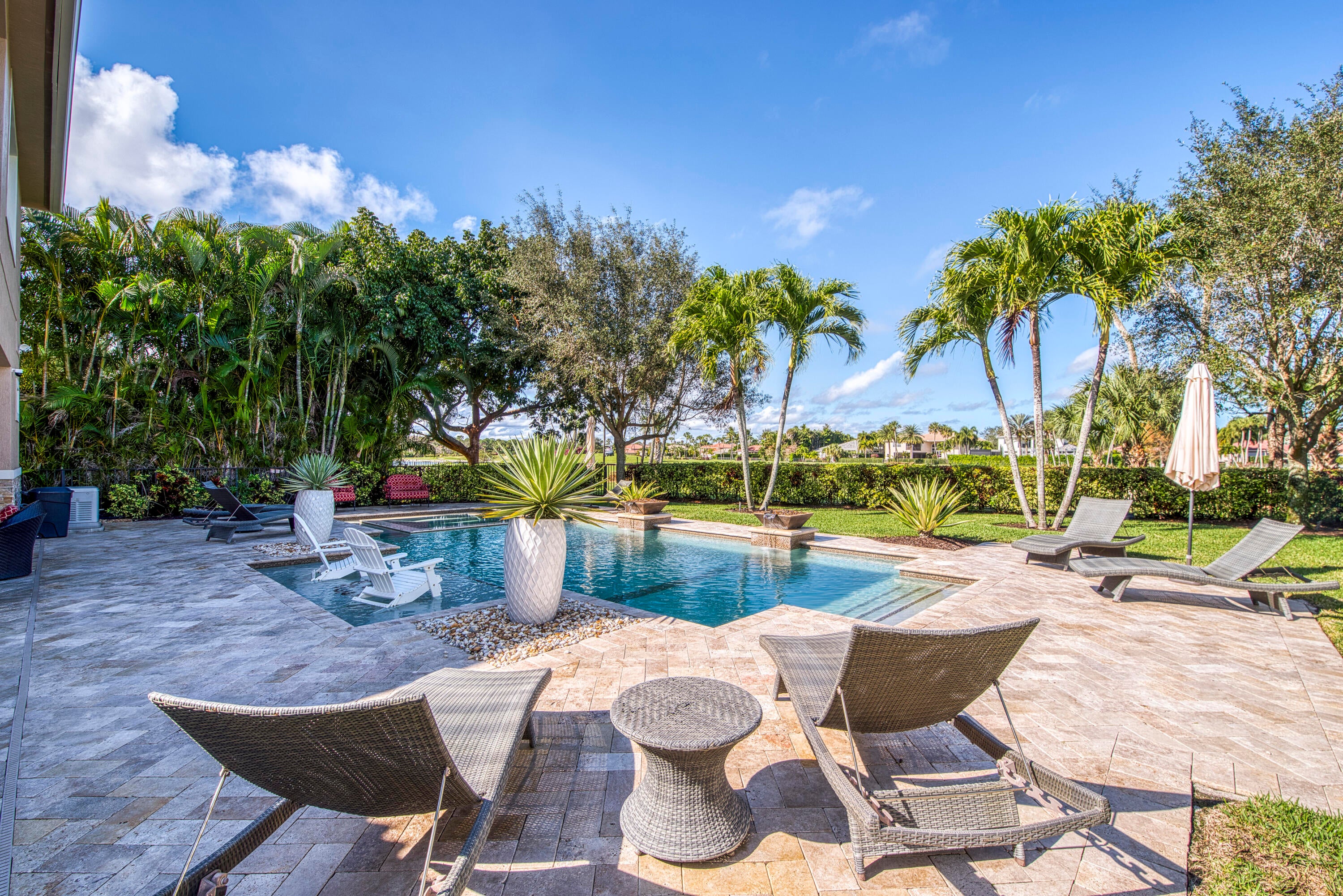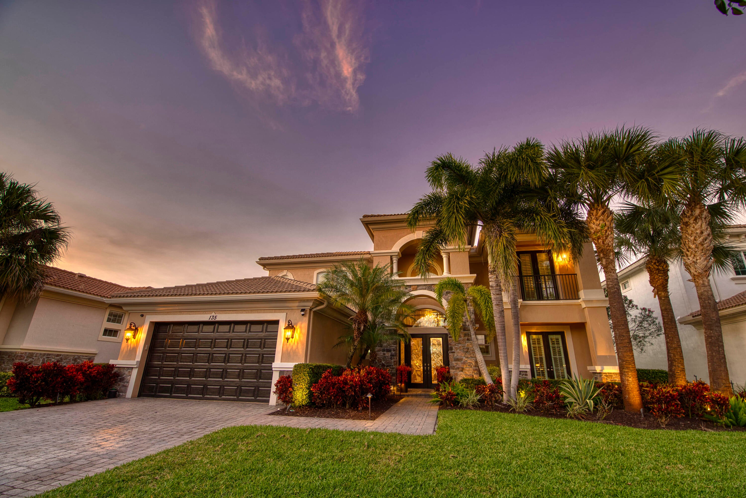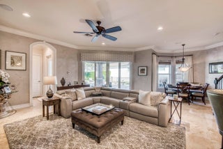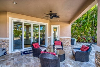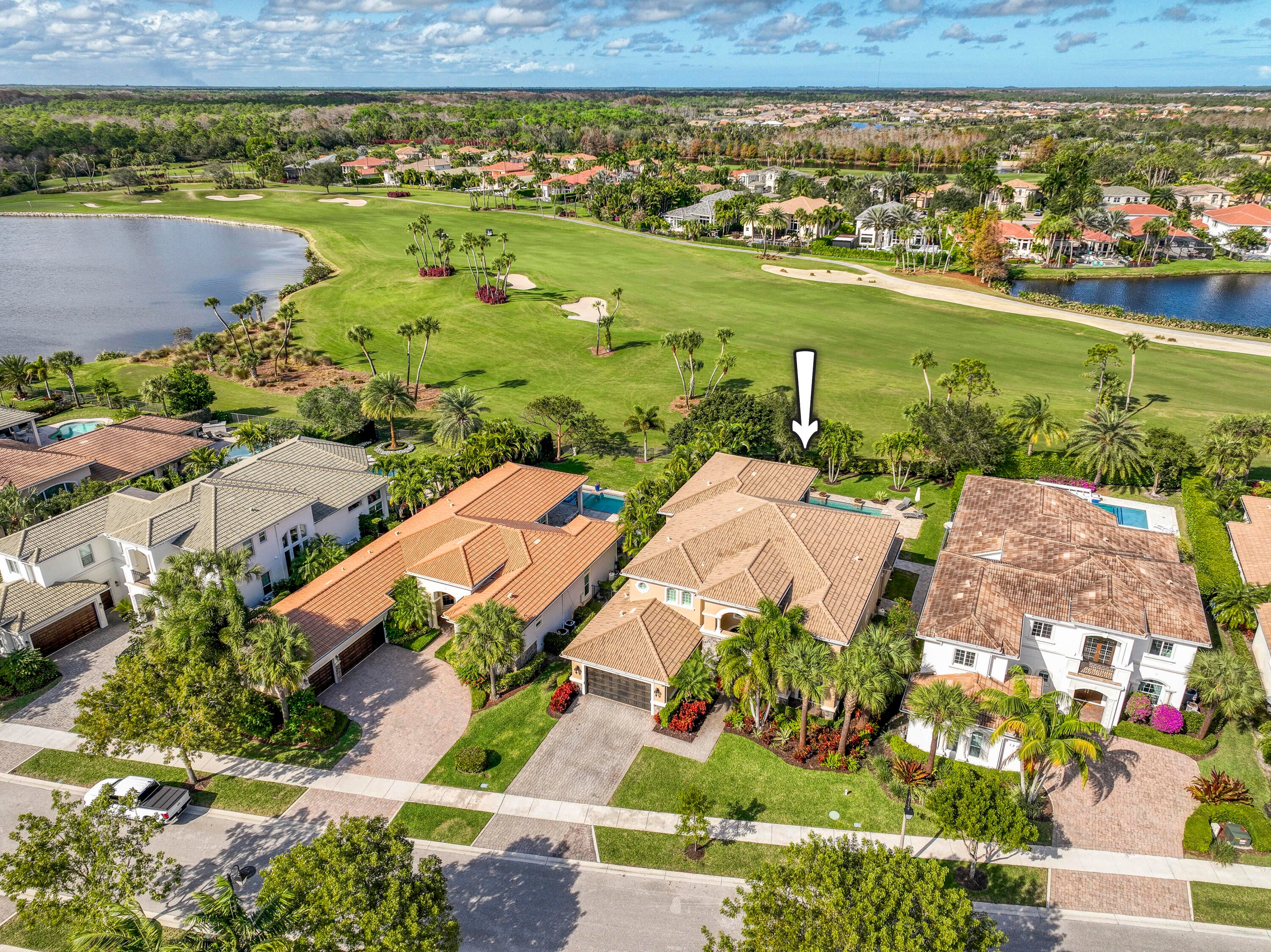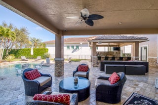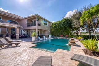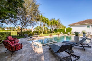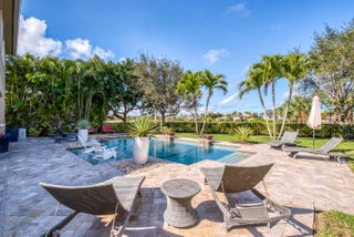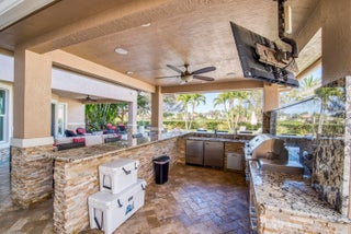 Exquisite Treanna model situated on a premium homesite in the luxury gated community of Jupiter Country Club. This stately 2 story home offers nearly 5,300 sf with 5 bedrooms, 5 baths, an office, flexible loft space, 3 car garage and a ONE-OF-A-KIND custom outdoor kitchen & bar. This coveted street & location offers serene golf course & dual lake views. Interior designer upgrades include marble & hardwood flooring, large scale crown molding, keystone trimmed entryways, custom built-in storage in closets & pantry, plantation shutters, elegant chandeliers, and so much more! Live comfortably in this energy efficient home with a whole house generator, natural gas, water softening system, CBS construction, impact glass windows & doors. The custom impact glass front doors with sidelites welcomeyou into the grand 2-story foyer with a circular staircase and floor to ceiling windows with gorgeous views of the backyard. A private downstairs wing offers 2 guest rooms & full bath. The cabana bath is conveniently located off the family room which is adjacent to the gourmet kitchen. The office is outfitted with a built-in desk & cabinetry, and French doors leading to its own covered porch. 2 separate staircases lead upstairs to the well-laid out split floorplan. A flexible loft space is perfect as a game room, exercise area, media room or additional office area. 2 guest rooms have dedicated baths and one has a private balcony. Channel your inner chef in the gourmet kitchen boasting a center island with prep sink, granite countertops, bar seating, Wolf & SubZero appliances, custom vent hood, 6 burner gas cooktop, custom cabinetry with pull out drawers, wine refrigerator, and a large walk-in pantry. The primary suite is expansive with a sitting area, 3 walk-in closets and French doors opening up to a large private balcony overlooking the stunning vistas. One massive custom walk-in closet boasts an exquisite chandelier, premium cabinetry, a closet island with drawers & a bench seating area. The primary bath is spa-like with an oversized soaking tub, dual vanities & separate water closet. The frameless glass-enclosed walk-in shower offers a rainfall showerhead, multiple sprayers and bench seating. The resort-style outdoor oasis is designed for both entertaining and everyday relaxation. The show-stopping space features a massive covered, custom-built bar and summer kitchen complete with a two-tap kegerator, BBQ grill with side burner, refrigerator, sink, ice maker, generous L-shaped bar seating & outdoor speakers. The expansive heated saltwater pool features a luxurious spa with lounge seating and massaging jets plus 2 stunning fire bowls with cascading waterfalls. Surrounded by travertine pavers, this private retreat is perfectly positioned to capture breathtaking golf course views framed by two serene lakesan unmatched backdrop for Florida living at its finest. Jupiter Country Club is a luxury gated community conveniently located within close proximity of I-95 and the FL Turnpike, pristine beaches, world-class shopping, restaurants, parks & nature preserves. Club amenities & events offer a plethora of social opportunities and include a Greg Norman Signature 18 hole golf course, 2 resort-style pools, the Sway restaurant & bar, a state-of-the-art fitness center + pilates reformer, yoga, barre (& many more) group fitness classes, massage/facial treatment services, tennis, bocce ball, pickleball & basketball. Members enjoy reciprocal privileges to Invited Clubs worldwide. Welcome home!