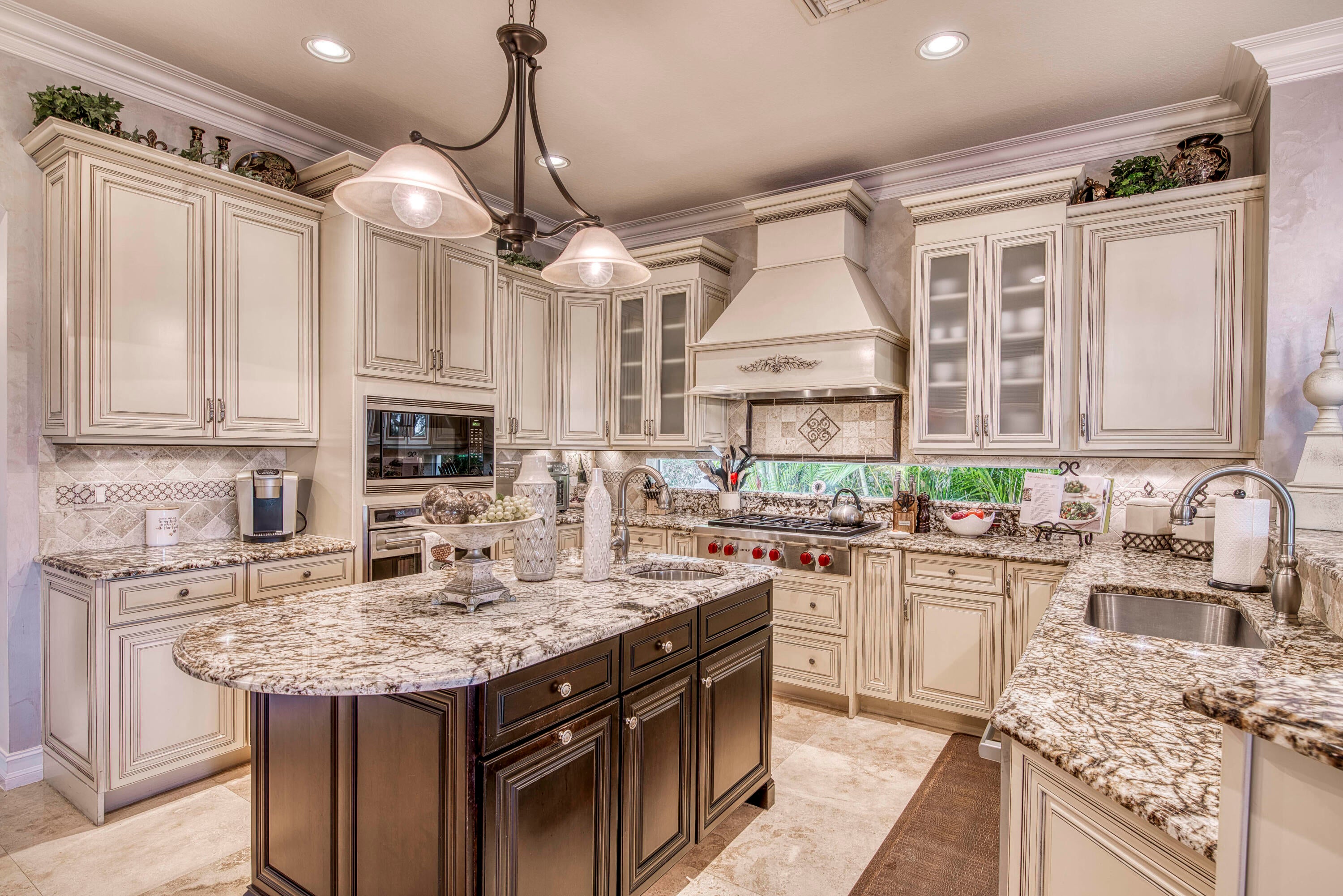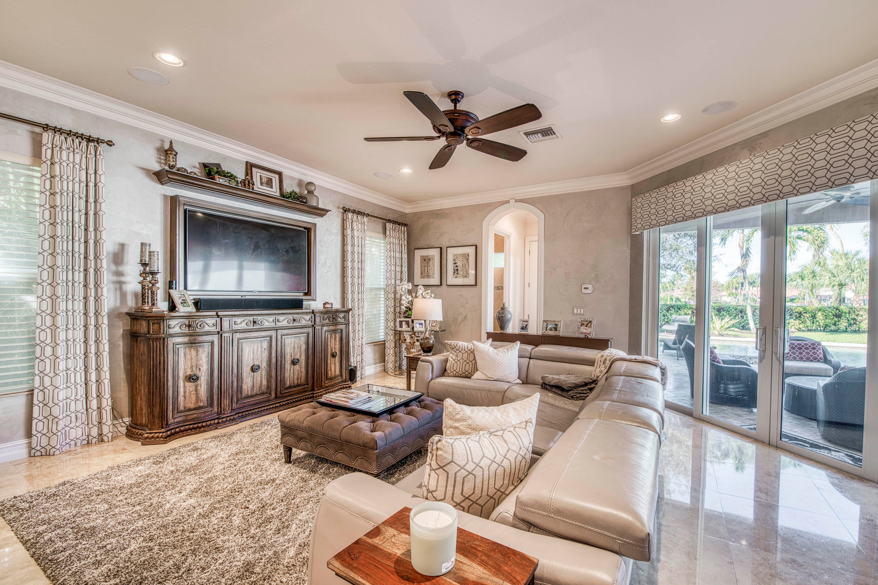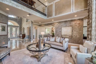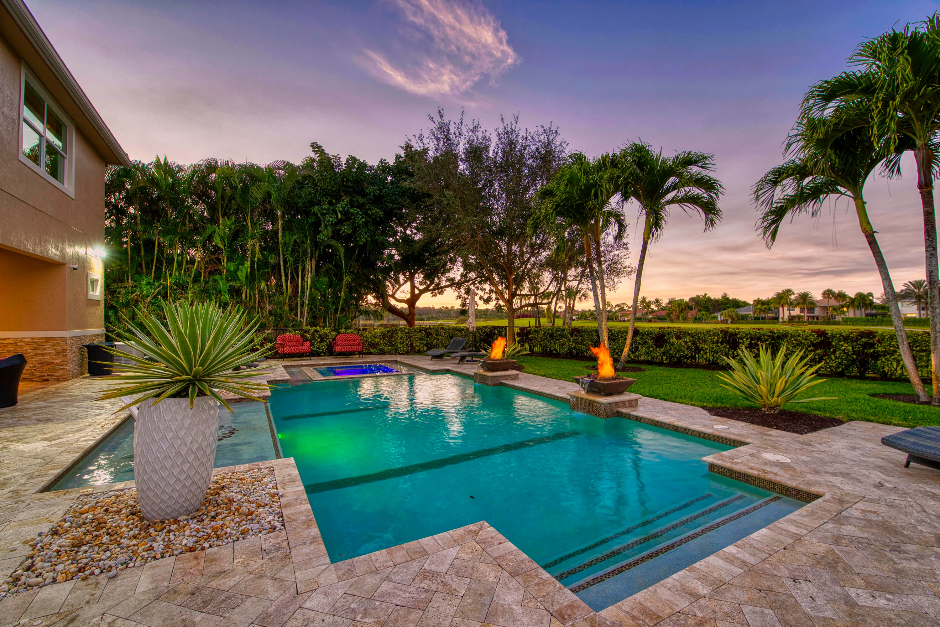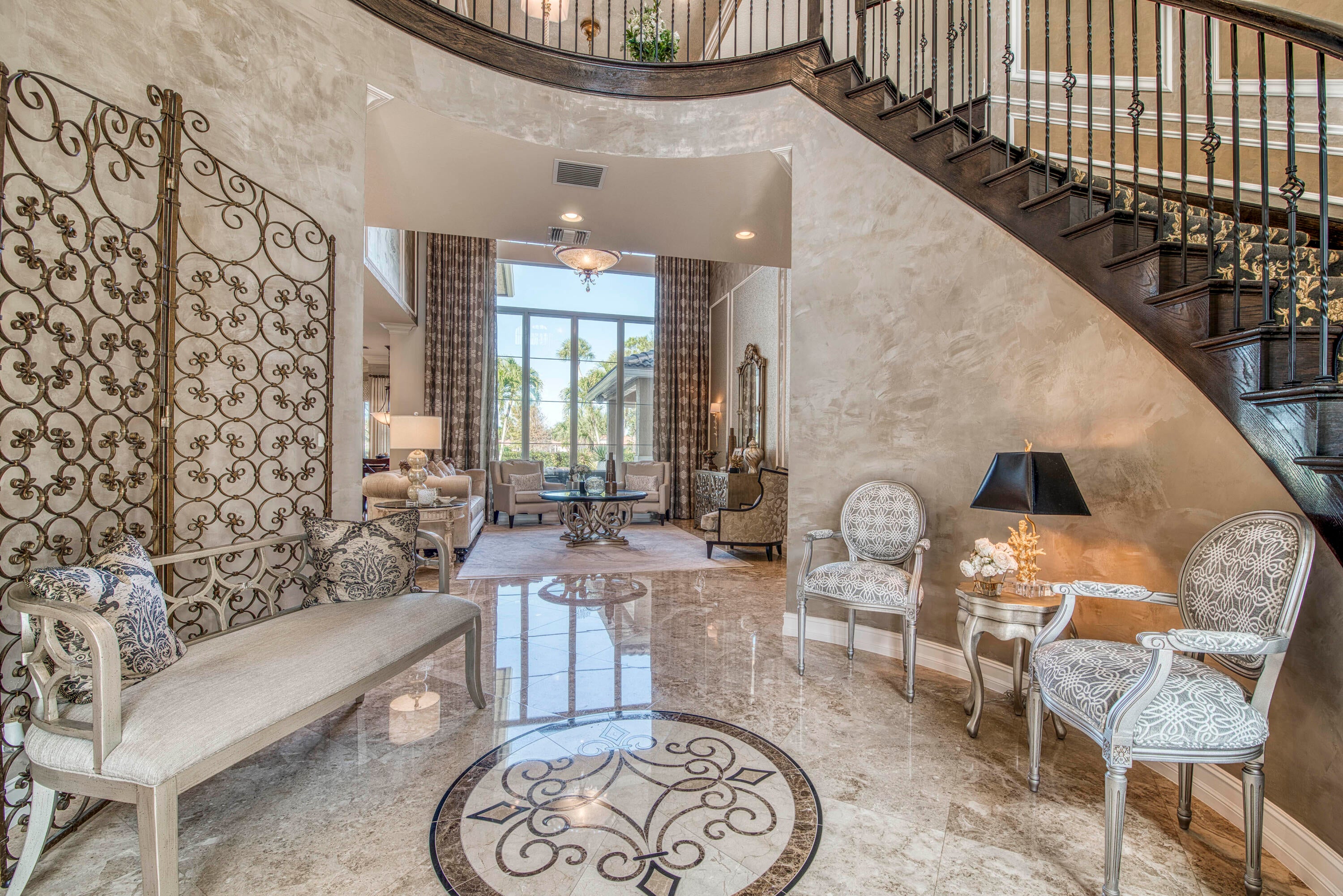 Exquisite Treanna model situated on a premium homesite in the luxury gated community of Jupiter Country Club. This stately 2 story home offers nearly 5,300 sf with 5 bedrooms, 5 baths, an office, flexible loft space, 3 car garage and a ONE-OF-A-KIND custom outdoor kitchen & bar. This coveted street & location offers serene golf course & dual lake views. Interior designer upgrades include marble & hardwood flooring, large scale crown molding, keystone trimmed entryways, custom built-in storage in closets & pantry, plantation shutters, elegant chandeliers, and so much more! Live comfortably in this energy efficient home with a whole house generator, natural gas, water softening system, CBS construction, impact glass windows & doors. The custom impact glass front doors with sidelites welcomeyou into the grand 2-story foyer with a circular staircase and floor to ceiling windows with gorgeous views of the backyard. A private downstairs wing offers 2 guest rooms & full bath. The cabana bath is conveniently located off the family room which is adjacent to the gourmet kitchen. The office is outfitted with a built-in desk & cabinetry, and French doors leading to its own covered porch. 2 separate staircases lead upstairs to the well-laid out split floorplan. A flexible loft space is perfect as a game room, exercise area, media room or additional office area. 2 guest rooms have dedicated baths and one has a private balcony. Channel your inner chef in the gourmet kitchen boasting a center island with prep sink, granite countertops, bar seating, Wolf & SubZero appliances, custom vent hood, 6 burner gas cooktop, custom cabinetry with pull out drawers, wine refrigerator, and a large walk-in pantry. The primary suite is expansive with a sitting area, 3 walk-in closets and French doors opening up to a large private balcony overlooking the stunning vistas. One massive custom walk-in closet boasts an exquisite chandelier, premium cabinetry, a closet island with drawers & a bench seating area. The primary bath is spa-like with an oversized soaking tub, dual vanities & separate water closet. The frameless glass-enclosed walk-in shower offers a rainfall showerhead, multiple sprayers and bench seating. The resort-style outdoor oasis is designed for both entertaining and everyday relaxation. The show-stopping space features a massive covered, custom-built bar and summer kitchen complete with a two-tap kegerator, BBQ grill with side burner, refrigerator, sink, ice maker, generous L-shaped bar seating & outdoor speakers. The expansive heated saltwater pool features a luxurious spa with lounge seating and massaging jets plus 2 stunning fire bowls with cascading waterfalls. Surrounded by travertine pavers, this private retreat is perfectly positioned to capture breathtaking golf course views framed by two serene lakesan unmatched backdrop for Florida living at its finest. Jupiter Country Club is a luxury gated community conveniently located within close proximity of I-95 and the FL Turnpike, pristine beaches, world-class shopping, restaurants, parks & nature preserves. Club amenities & events offer a plethora of social opportunities and include a Greg Norman Signature 18 hole golf course, 2 resort-style pools, the Sway restaurant & bar, a state-of-the-art fitness center + pilates reformer, yoga, barre (& many more) group fitness classes, massage/facial treatment services, tennis, bocce ball, pickleball & basketball. Members enjoy reciprocal privileges to Invited Clubs worldwide. Welcome home!