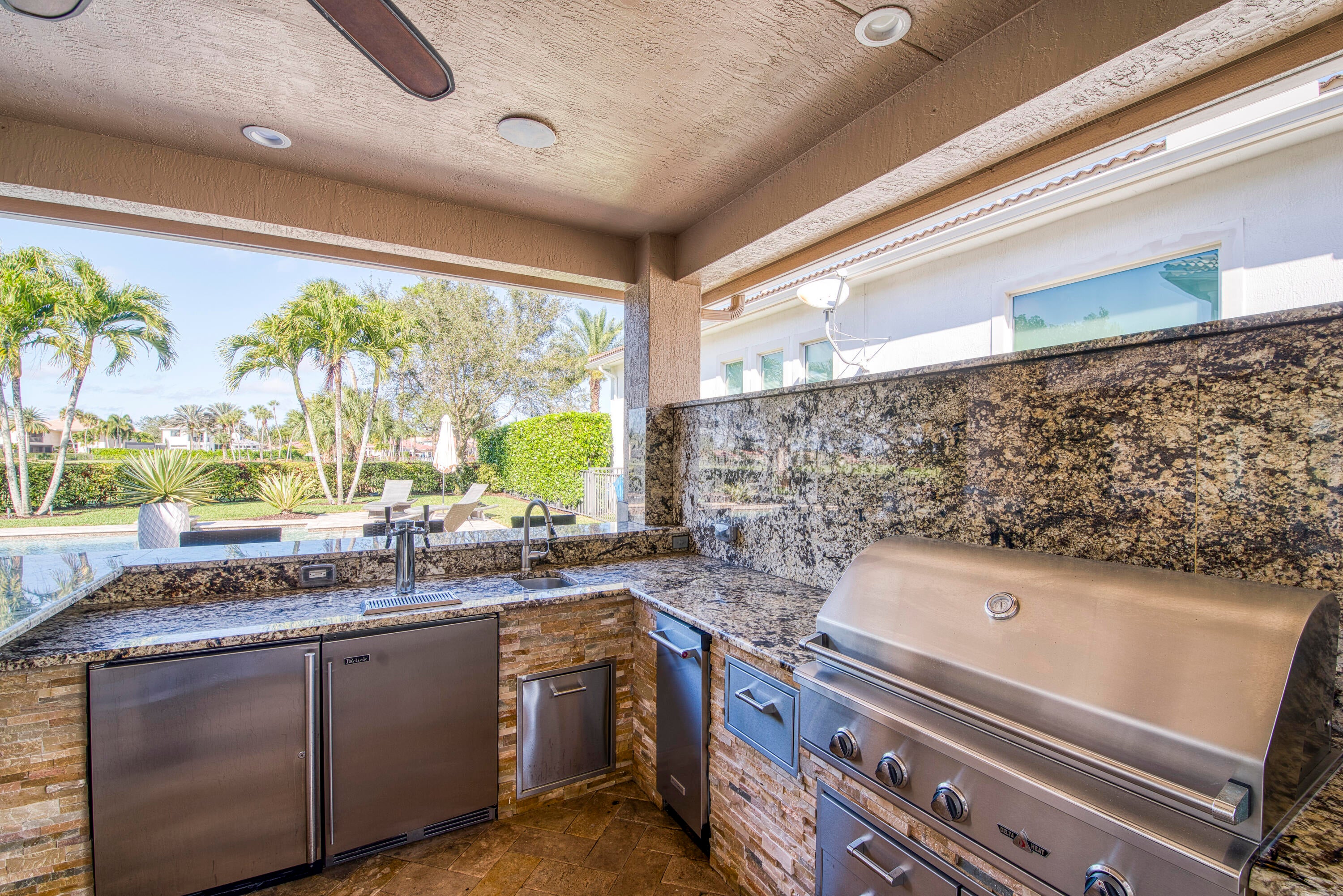 Auto Sprinkler, Built-in Grill, Covered Balcony, Covered Patio, Custom Lighting, Fence, Open Patio, Zoned Sprinkler, Cabana, Summer Kitchen