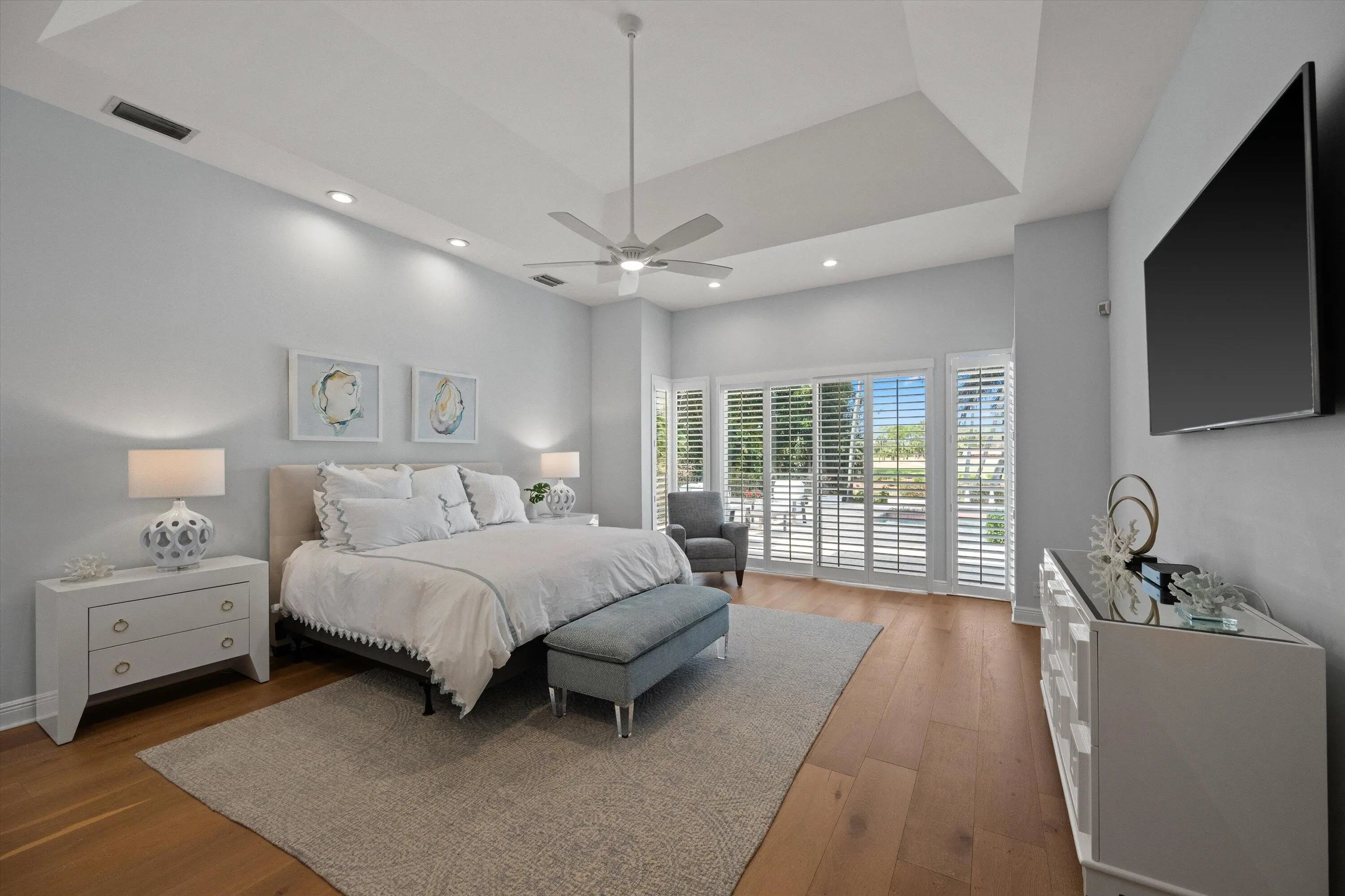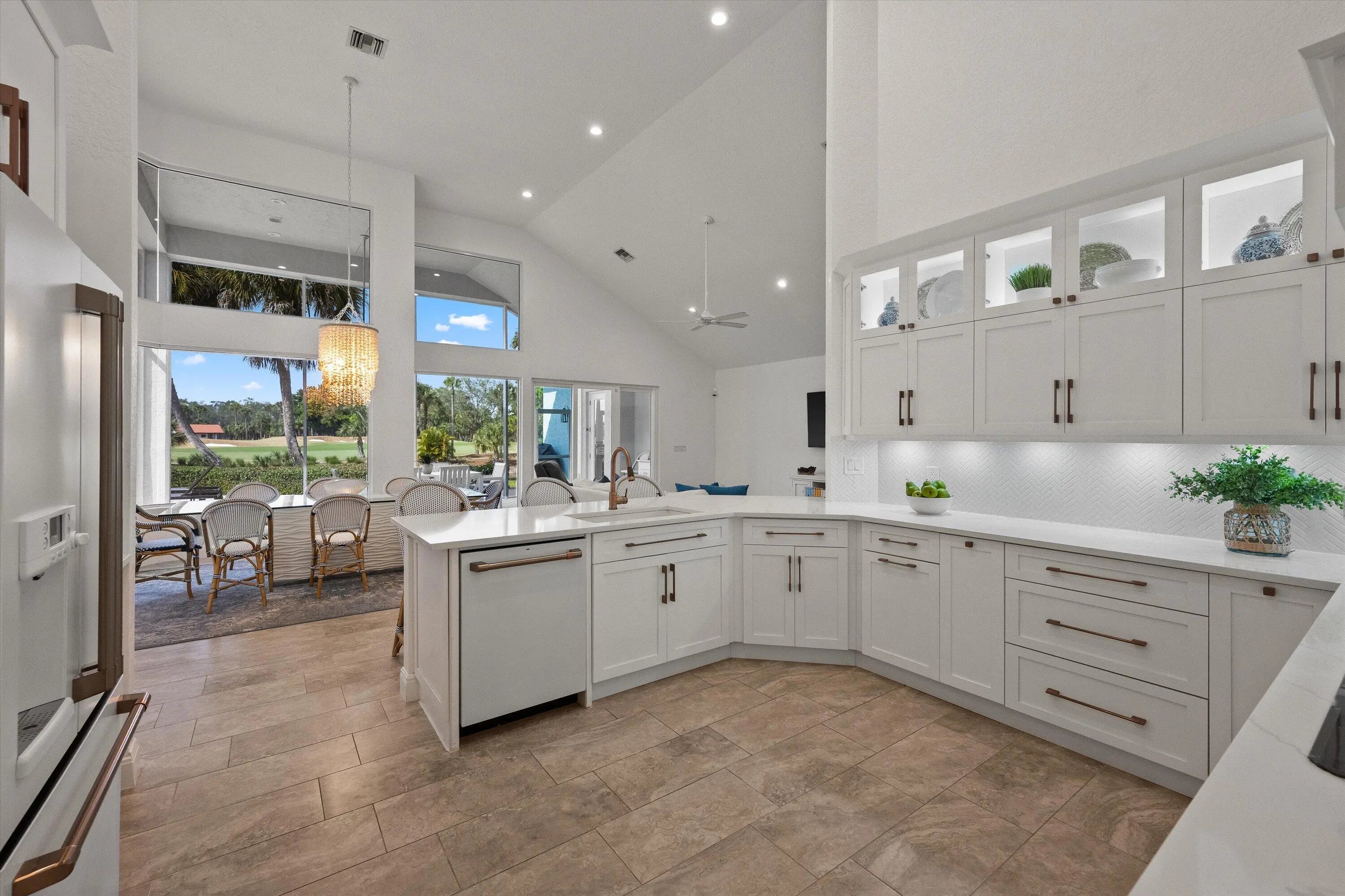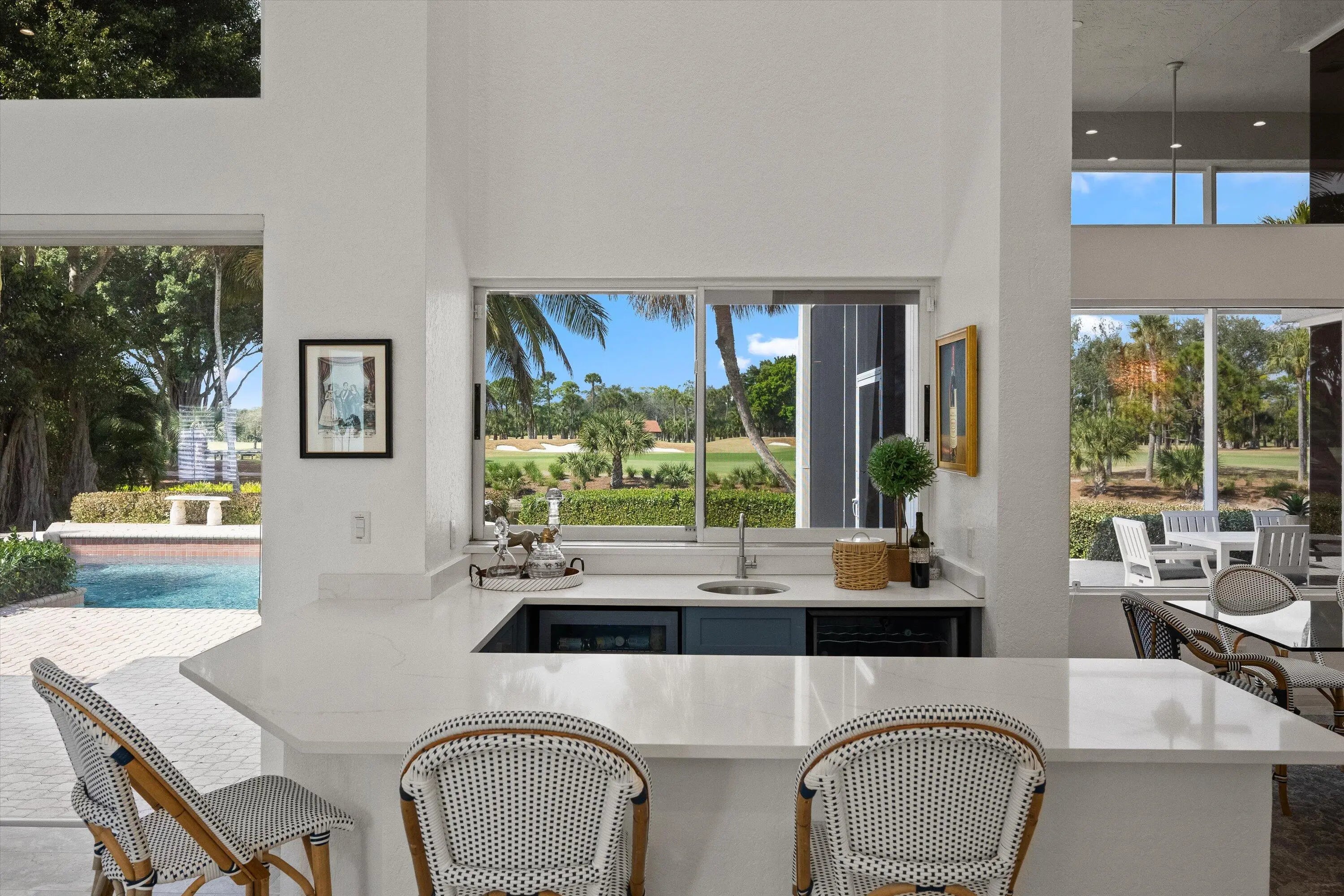 Looking for one of the most amazing, unobstructed, panoramic golf & lake views in all of Palm Beach County? Here it is... located in West Palm Beach on the prestigious Breakers West Rees Jones Golf Course. This custom built, single-story home offers an open floor plan with 4BR/4.1BA + Office, 2 car+ golf cart garage with almost 4,000SF AC Living Area. Making a great first impression with its light and airy decor, the Living Room and Family Room boast 8ft sliding doors with transom windows above, all opening to the gorgeous patio, pool with heated spa, and that 10 out of 10 view! An updated Chef's kitchen featuring crisp white cabinetry, quartz countertops, herringbone tile backsplash, and GE Cafe appliances (double ovens, induction cooktop, French Door refrig) opens to wet bar, lg Dining