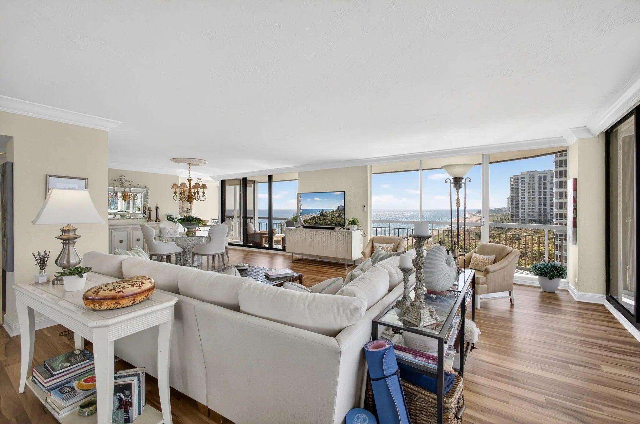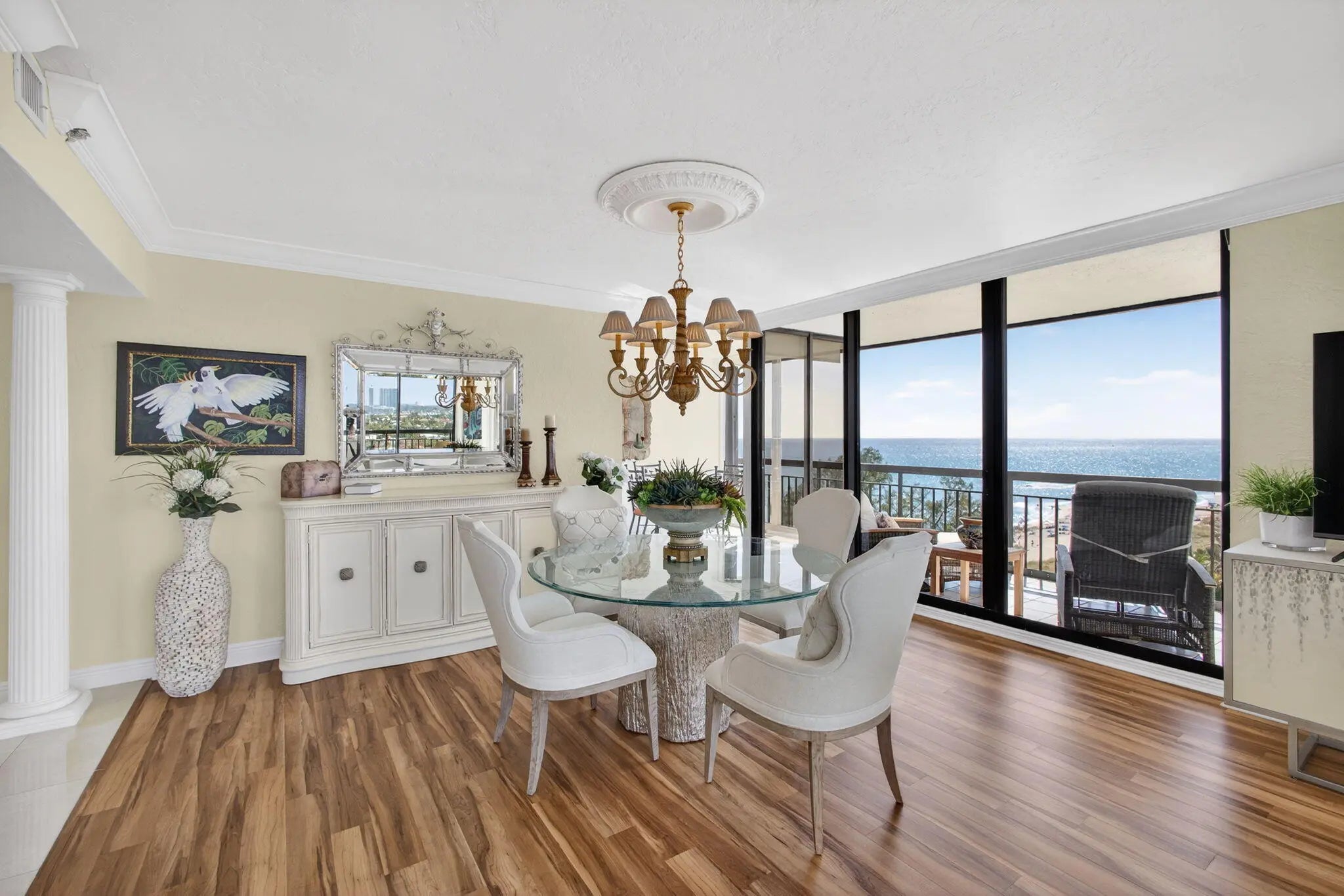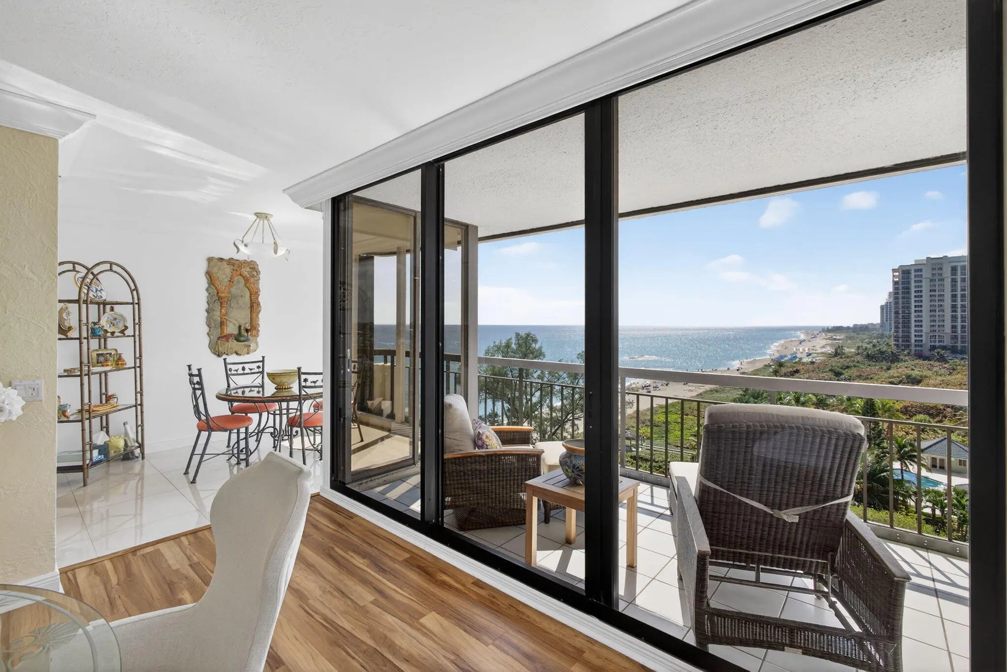 Direct Southern Exposure with Multi-Million Dollar Views Over Beautiful Singer Island Beach. Unit offers breathtaking panoramic views of the Atlantic Ocean and Intracoastal from every room, filling the residence with natural light by day and stunning coastal nightlights in the evening. Located in the prestigious Martinique community, soon to unveil an extraordinary new pool deck and cabana setting, this beautifully updated home features wood-look vinyl flooring in the living areas, porcelain and marble finishes in the kitchen and baths, and stainless steel appliances. Amenities include a fitness center, spin room, tennis courts, on-site restaurant with a locally renowned chef, 365-day manned beach service, and two covered garage parking spaces.
