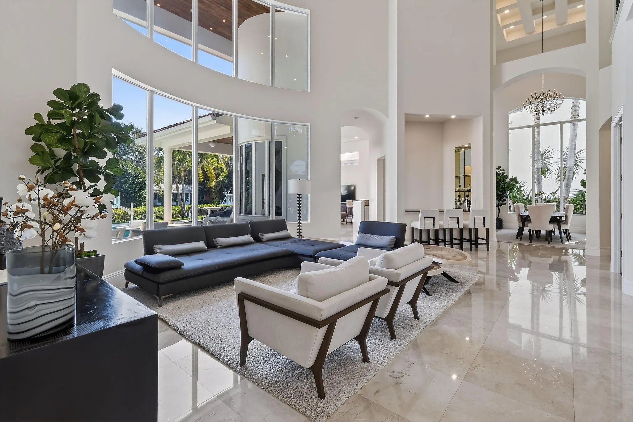Tucked along a peaceful waterfront in Palm Beach Gardens, 12860 Inshore Drive captures the essence of refined coastal living, where mornings begin on the water and evenings are spent entertaining under the palms. With effortless access to the Intracoastal and the open ocean, boating becomes a natural extension of daily life, while the absence of HOA fees offers a rare sense of freedom and privacy. Inside, the home is beautifully curated for comfort and sophistication. A private first-floor office offers a quiet retreat for work or study, while the primary suite is designed as a true sanctuary with dual bathrooms, expansive walk-in closets, and a dedicated fitness area. Marble flooring, impact glass, and smart home technology elevate both the aesthetic and functionality of the residence.