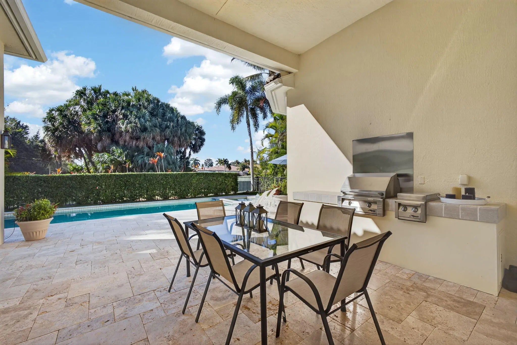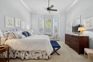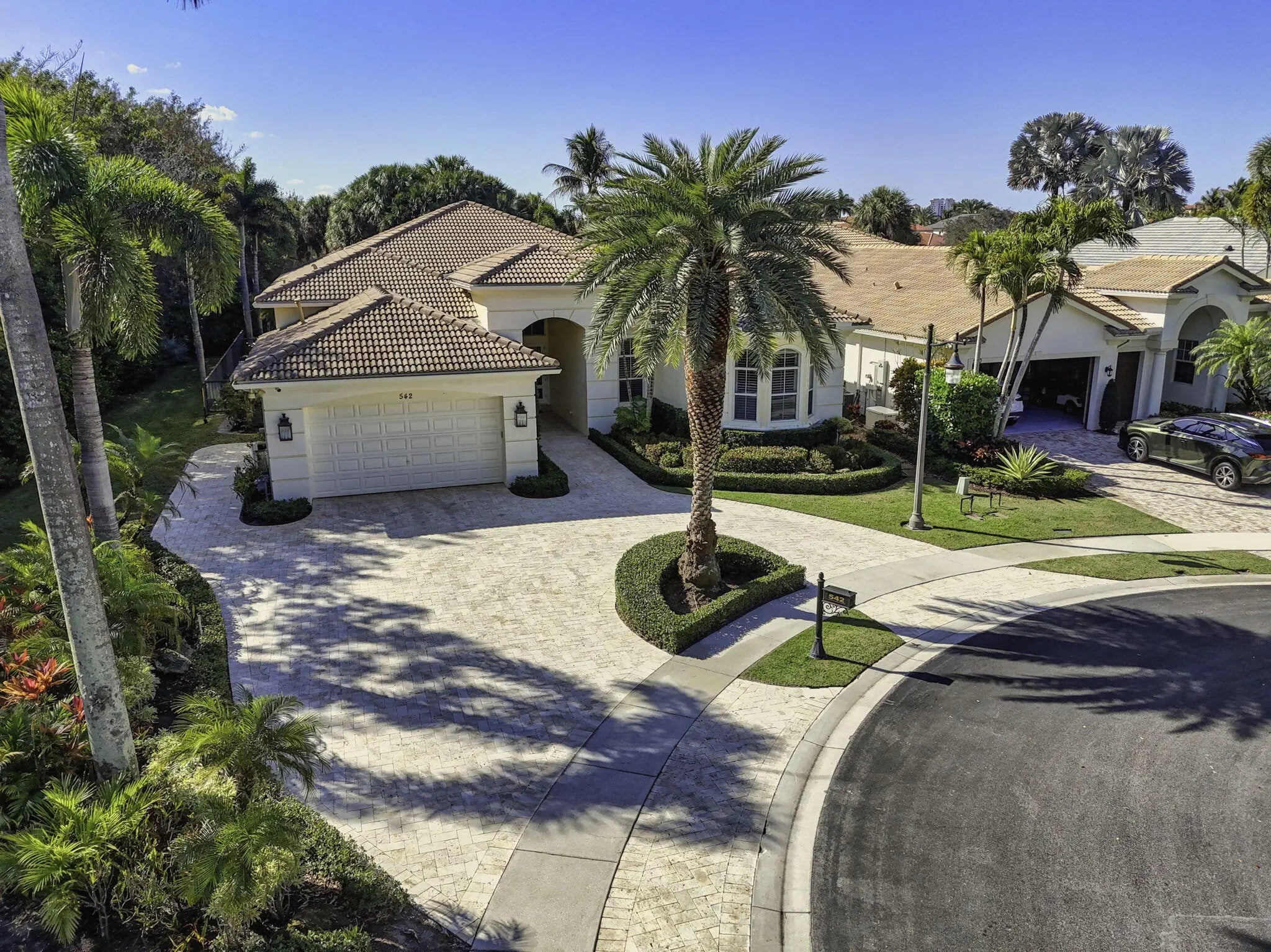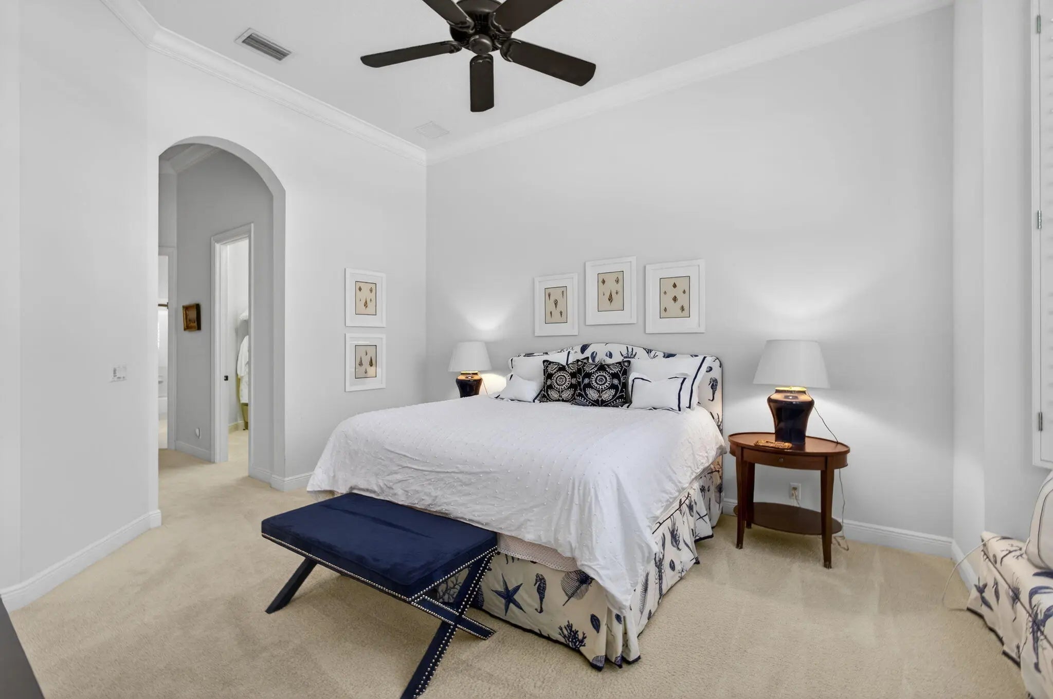 Nestled on one of the most private lots in Frenchman's Reserve, this exceptional one-story residence offers 3 bedrooms ans 3 1/2 baths in a serene cul-de-sac setting. With no neighbor on one side and a single-story home on the other, the property enjoys rare and remarkable privacy.A circular marble driveway creates a grand first impression, while the freshly painted exterior enhances the home's crisp, elegant curb appeal. Inside, the open-concept floor plan is light, bright, and thoughtfully designed for both everyday living and entertaining. Plantation shutters add timeless charm throughout.The white kitchen features neutral granite countertops, a butler's pantry, and seamless flow into the main living areas. Recent upgrades include a