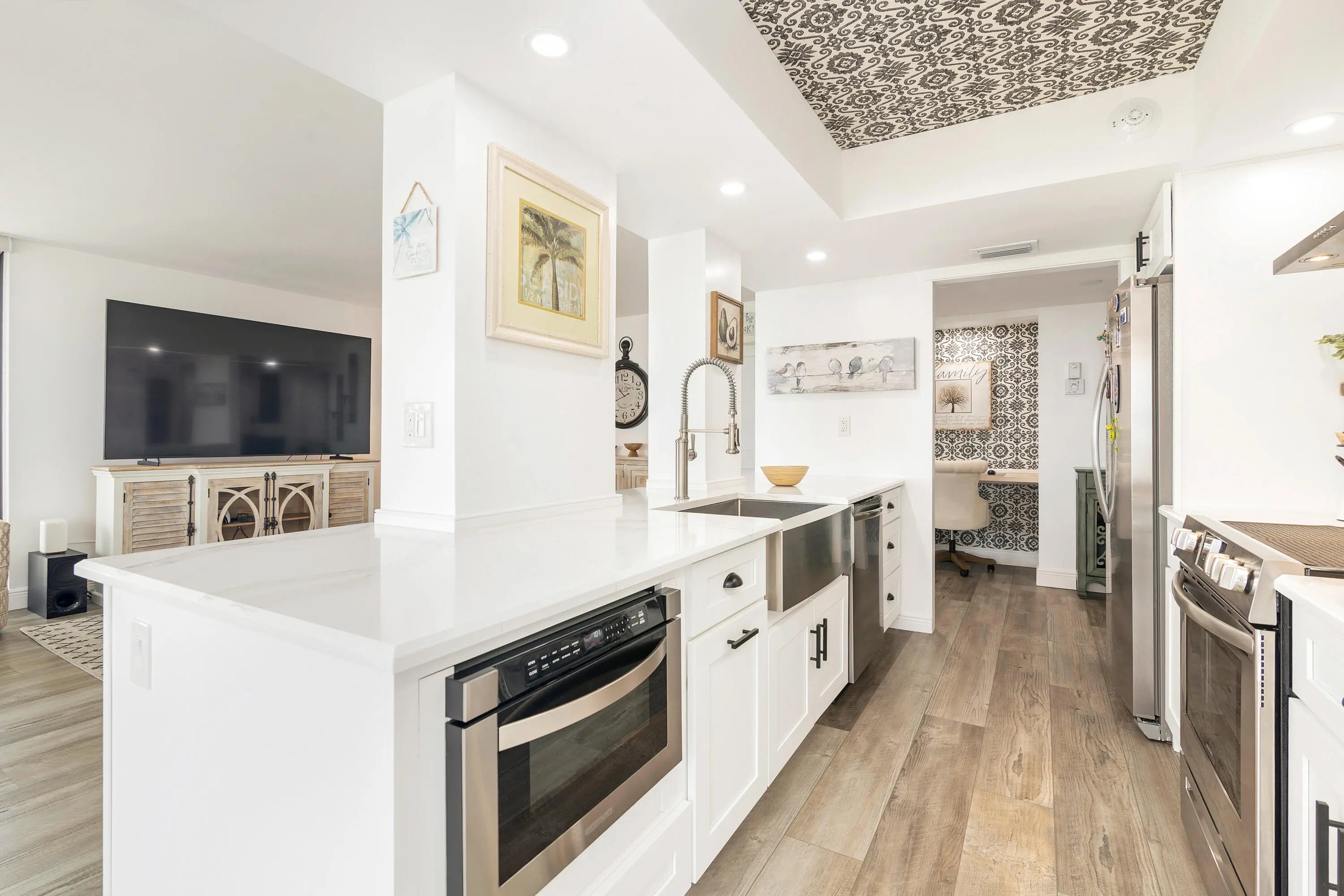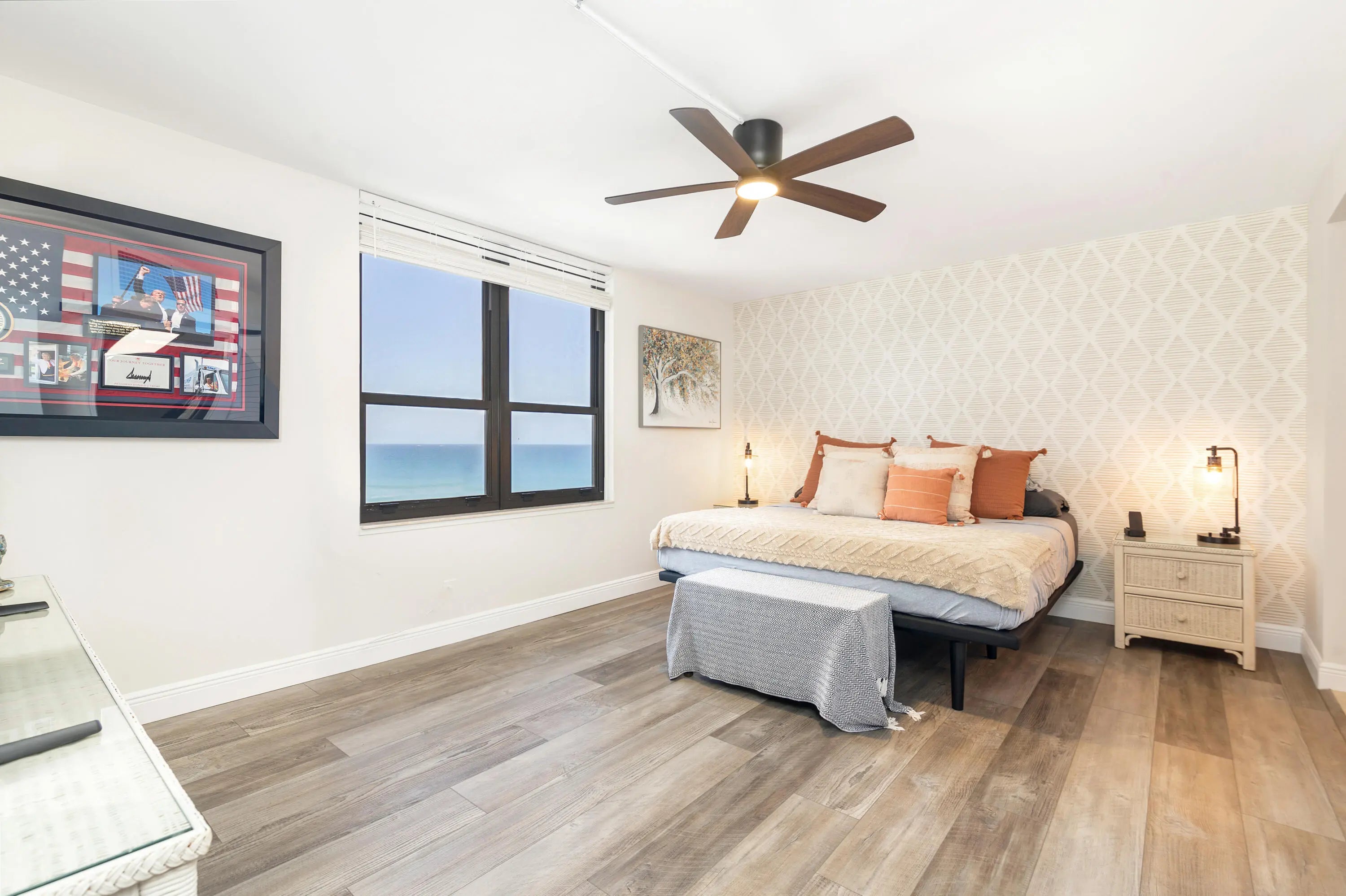 Welcome to Dunes Towers A6D on Singer Island! This stunning 2-bedroom, 2-bath corner condo features a wraparound balcony with expansive views of the Intracoastal and ocean. Located on the 6th floor, the living area is bright and airy, filled with natural light. The modern kitchen boasts quartz countertops, ample storage, and a built-in wine bar. The primary suite offers beautiful ocean views, a walk-in closet, and an en-suite bath with double vanities and a walk-in shower. The second bedroom overlooks the Intracoastal and includes a walk-in closet, along with a bath that features both a tub and shower. Enjoy beautiful sunrises and sunsets from your own piece of paradise.